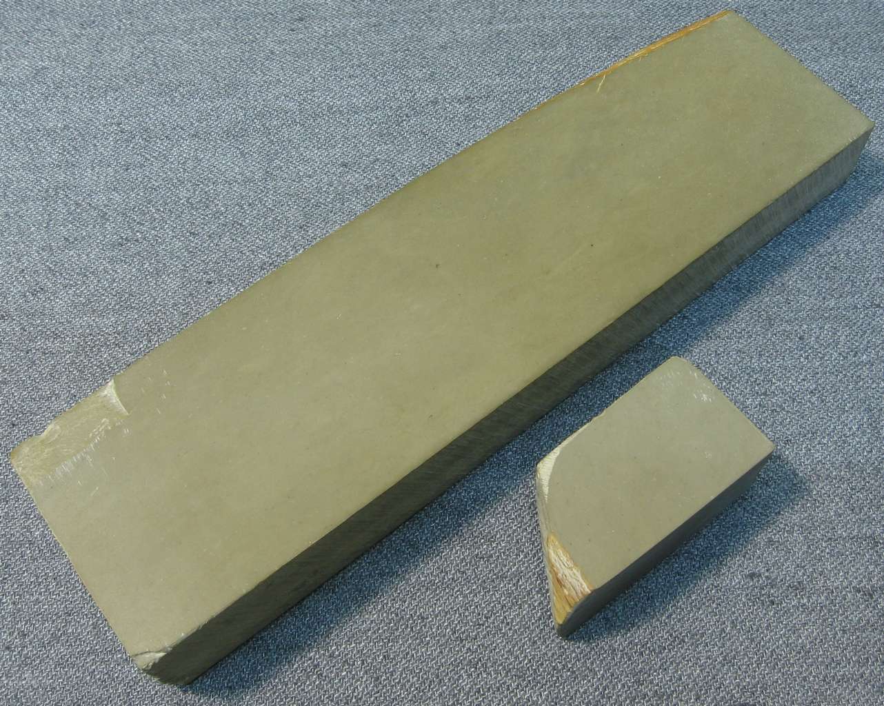 Размеры камня: 184*51*22 мм, вес: 497 мм. Тома-нагура отдельно. Вес нагур: томо-нагура - 55 гр, ботан - 87 гр, тензе- 75 гр, маджиро - 79 гр. Цена за все (продаю ровно за столько покупал): 7200 руб. Доставка почтой-россией 1 классом бандеролью - 250 руб. Доставка ускоренная - считается отдельно (смотря в какой город и какой компанией). В г. Новосибирск можно посмотреть, попробовать, и забрать лично. Камень таким как я его купил, можно посмотреть тут: http://www.ebay.com/itm/261303000749?ss ... 1439.l2649" onclick="window.open(this.href);return false; В последствии печати стерлись, а так же я отпилил кусочек на томо-нагура (его же камень для наведения суспензии), обратная сторона была выровнена, как и передняя и обе стороны доведены до зеркала под углом. С одного угла с одной из с торон имеется желтая прожилка, которая иногда немного ощутима при работе на чистом камне и думаю лучше её обходить. Эта же сторона камня практически прямоуголна-плоская, обратная с некоторыми сколами, по 2 углам. Никаких трещин нет - смотрите пожалуйста фото, там всё видно. Камень работает крайне быстро, суспензия выделяется, при работе на чистом камне, неохотно, но она есть. Ещё цитата моя же из другой темы: Spoiler Show