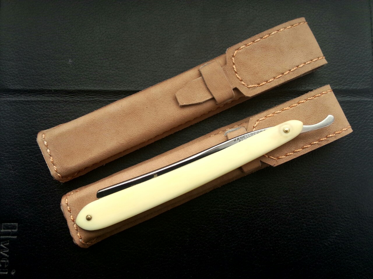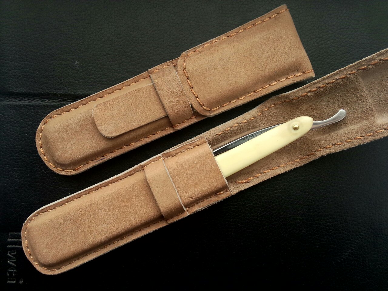 Швеция, ширина 3/8, ручка-целлулоид, заточена и готова к бритью. Легкая и маневренная бритва. Кожаный чехол в комплекте. Временно снята с продажи Spoiler Show
