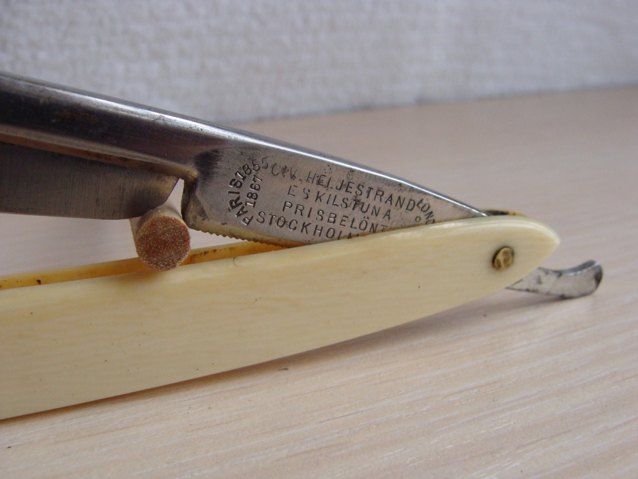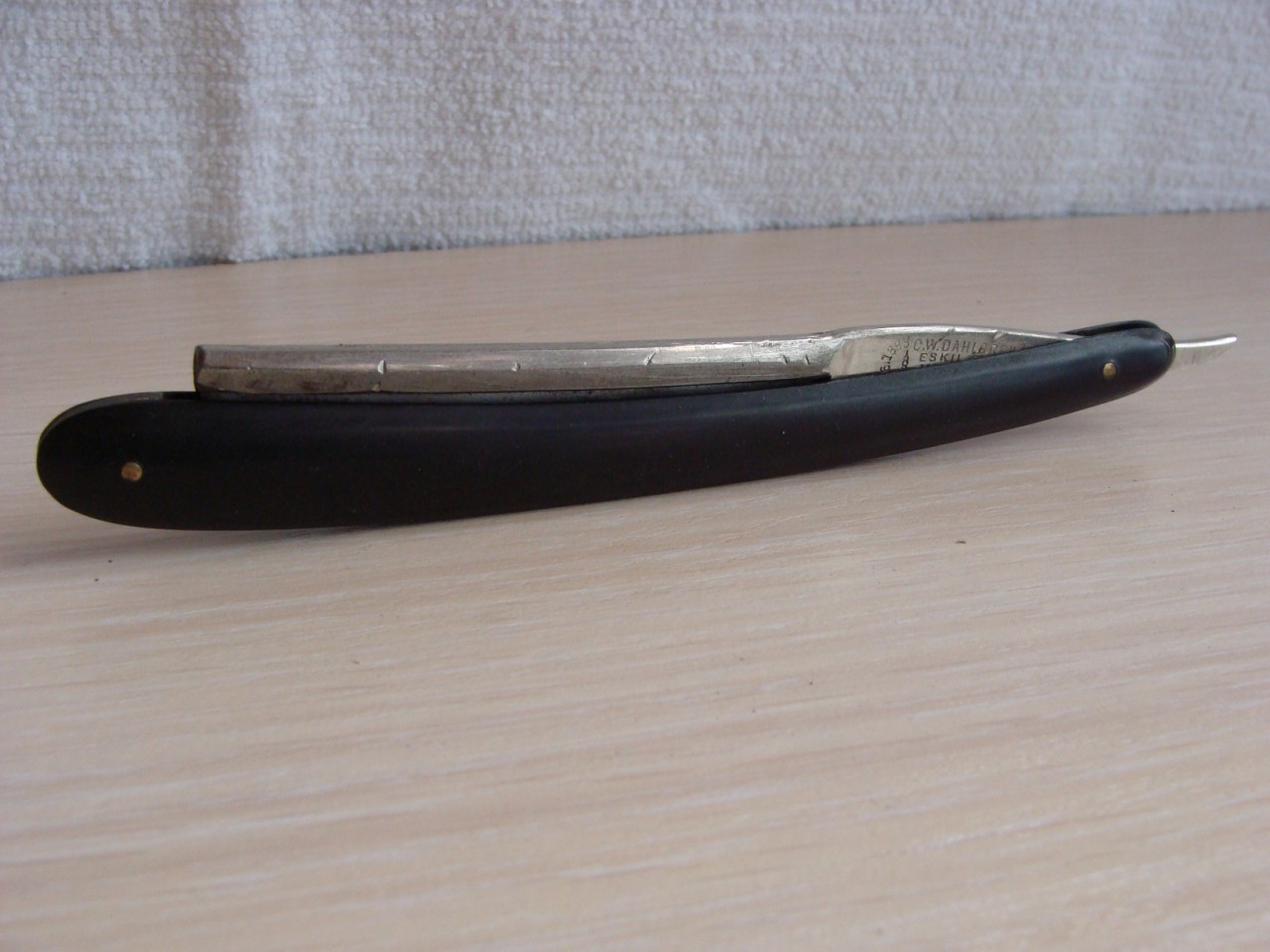 Швеция, ширина 3/8, вогнутость холлоу, ручка мореный дуб. Изящная и очень легкая бритва. ПРОДАНА. Spoiler Show Под реставрацию. Бритва J.A.HELLBERG. Швед, ширина 5/8, ручка пластик. Продана. Spoiler Show