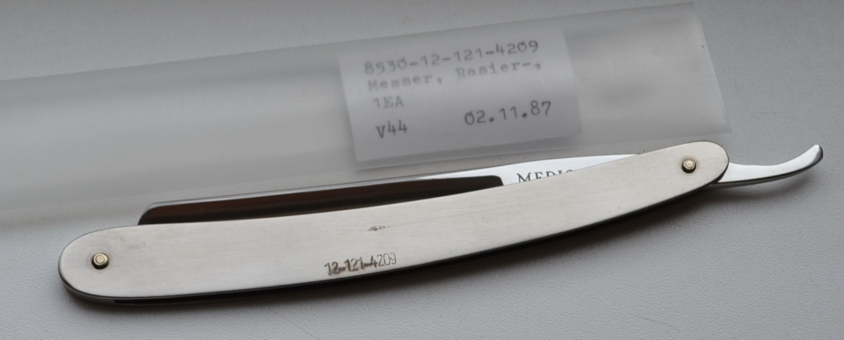 Бритва: medycon Госзаказ Бундесвера с хранения. http://britva.ru/forum/viewtopic.php?f=27&t=6058" onclick="window.open(this.href);return false; Видео бритья под спойлером от нашего форумчанина Сергей В. http://britva.ru/forum/viewtopic.php?p=138934#p138934" onclick="window.open(this.href);return false; Германия, ширина 5|8, вогнутость - холлоу, нержавеющая сталь, ручка-сплав, новая в упаковке. Ремень: http://www.britva.ru/forum/viewtopic.php?p=73081#p73081" onclick="window.open(this.href);return false; продано Y Show Re: Продаётся от FransНабор новичка № 82