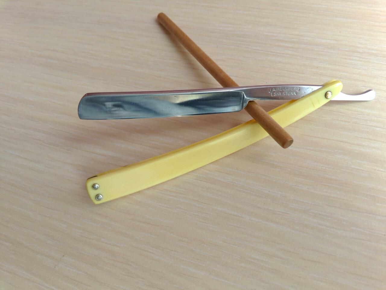 Швеция, ширина 3/8, вогнутость холлоу, ручка мореный дуб. Изящная и очень легкая бритва. ПРОДАНА. Spoiler Show Под реставрацию. Бритва J.A.HELLBERG. Швед, ширина 5/8, ручка пластик. Продана. Spoiler Show