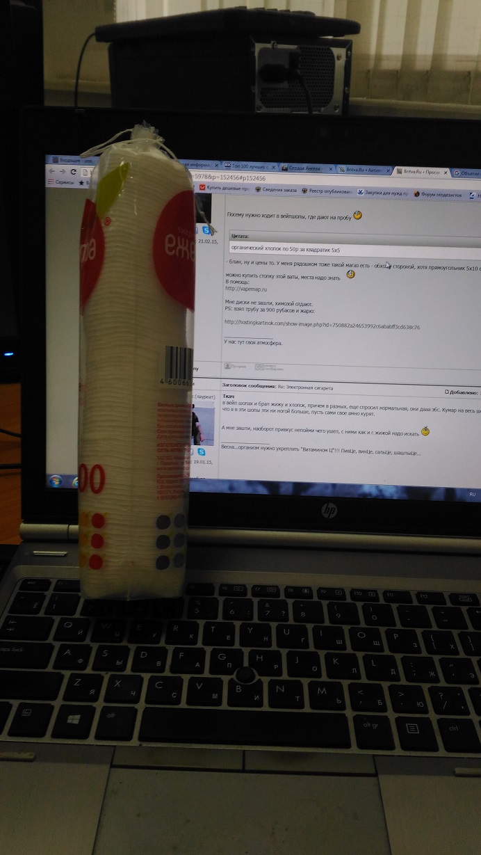 Re: Электронная сигаретаНедавно втарил жижы по 250 за 50мл, дыню и что-то типа кофейного ликера. Такого говна я еще не встречал, фотки вечером выложу, когда дома буду. Чтоб не покупали это Г. Избавляясь от этого гадкого привкуса и вкуса провел кучу экспериментов, менял укладку, омы, диаметры и т.д. Наплевался и наматерился. Пока все это пробовал ушла вся вата (органический хлопок по 50р за квадратик 5х5 или 6х6 см, не мерил точно). Сегодня промыв весь агрегат и прокалив спираль использовал ватные диски. Выбирал по критериям: 100% хлопок, изготовлено без использования хлора, применяется в гигиенических и медицинских целях.
