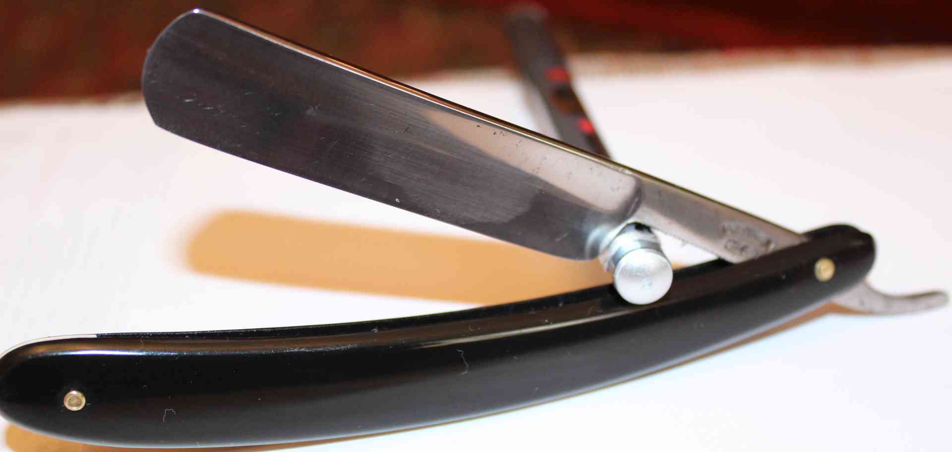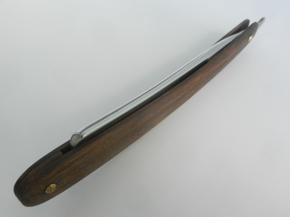 Работа примечательна для меня двумя вещами. Первое - при чистке клинка откололся кончик полотна (видно на фото ДО, самый кончик отличается от всего полотна, именно он и откололся). Пришлось укоротить полотно на 5 мм, так же пропорционально укоротил ручку и вклеил пластиковый белый клинышек. Второе - бритву полностью разбирал, чистил. Новые заклепки - моих рук дело, удалось приблизиться к оригиналу, т.е. заклепать без наружных шайб. Клинок в оправе сидит ровно, не болтается. Очень понравилось работать с этой бритвой в плане нового опыта ДО Spoiler Show Spoiler Show