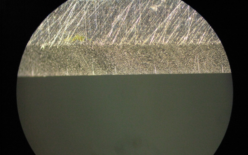 Re: Заточка на камняхНу что, вроде получше. Не скажу что охрененно чисто, но результат меня устроил. Сверху следы от предыдущей заточки. Сет обычный -  япнат+нагуры+борд 3 маха+ремень. Фото -