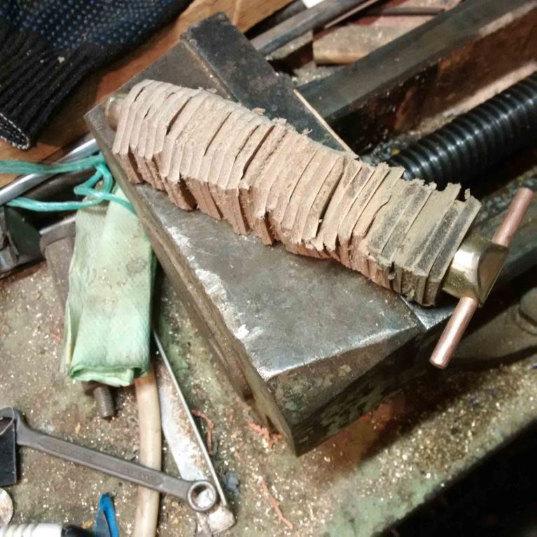 Re: Изготовление ремней для правкиОбзавелся ремешок и ручкой и подвесом-шарниром. Все самодельное на коленке. Полоса кожи - растишка от unsui - 65х600х5мм - Поклон ему и благодарность Шкурка 800-1500-2000 и потом чуть заполирована куском кожи. Много фото процесс кому интересны детали Show продолжение Show