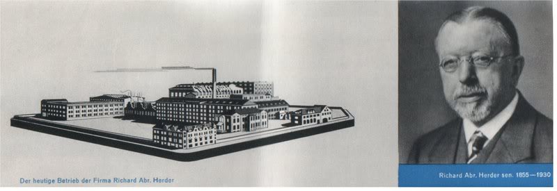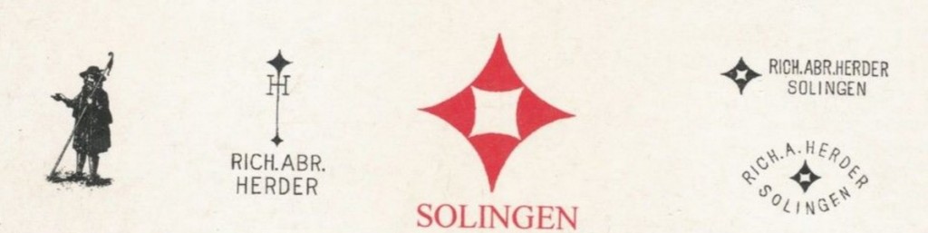 Richard Abraham Herder, другая ветвь великого семейства Herder, которая организовала производство столовых приборов и инструментов. Свой бизнес они начали в 1884, зарегистрировались 19 ноября 1884, Solingen, Rathausstrasse 20-22. С 1885 - R. Herder С 1916 - Richard Abr Herder С 1936 - Richard Abr Herder AG. Код-М7/18 Производитель — Richard Abr. Herder, Solingen M7h/ 18 Gebr. Knoth, Solingen Re: RICH ABR HERDER. SOLINGENв копилку логотипы: