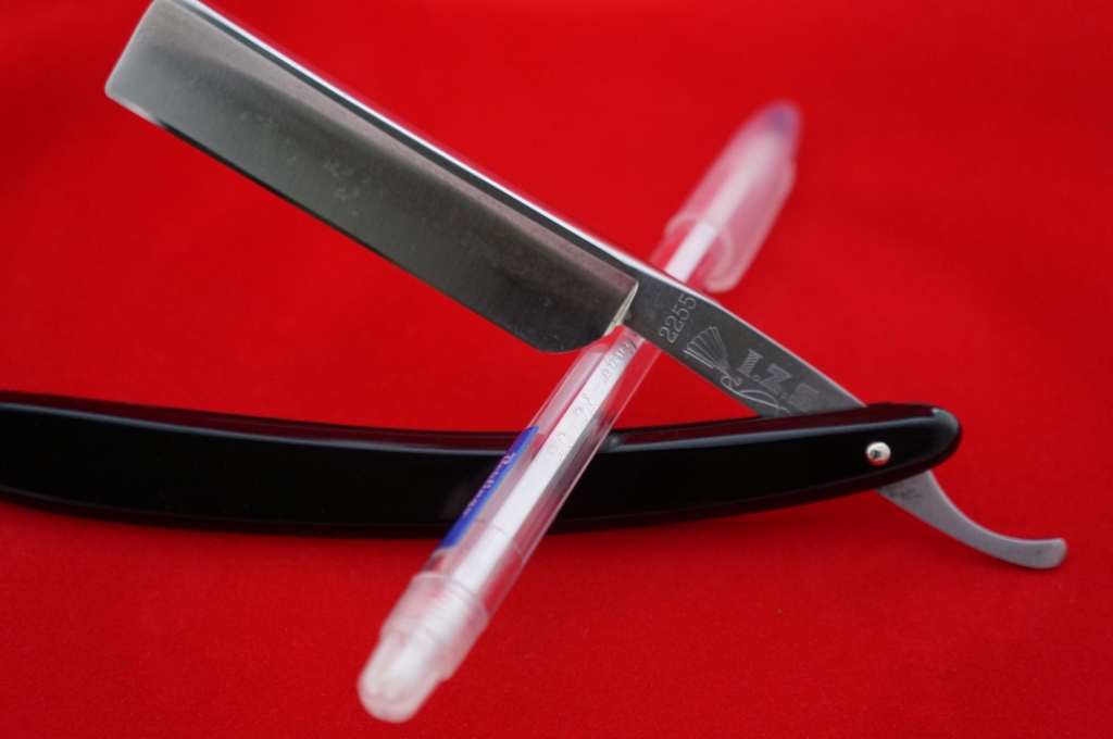 Продаётся от Virabian6Япония. Черная граница. BLACK FRONTIER 1800, swedish steel, for barbers' use first quality. Первое качество для парикмахеров ( в дословном переводе). Период изготовления - 50 - 60 годы прошлого века. Шведская сталь. Хвостовик и эрль под воронением, наждачку не применял, чтобы не снести его. Протер автосолом и все. Бритва массивная, тяжелая. 5/8. Толщина обуха - 7 мм., ширина лезвия - 19 мм., длина лезвия - 79 мм. Заточена, продезинфицирована, готова к бритью.