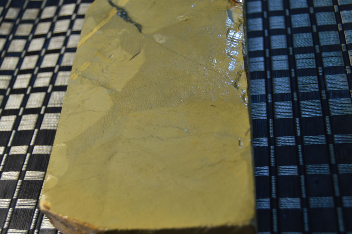Re: Продаётся от artemarut1 Бритвы Камни РемниSpoiler Show Продам в ответственные руки японский атрибутированный камень Нашиджи, чистый, никаких линий, гритность финишная, зеленоватый цвет камня разбавлен желтым(не смог в точности сфотографировать цвет, в живую ощущения что камень живой). Камень очень быстрый и твердый (около 5-5+), видимо долго хранился(японцы не церемонятся и держат камень на камне) и остались коцки на лицевой поверхности, прилагаю доп. фото(см.выше под спойлером). Размер 153/84/29мм. Цена 20000р Камень притерт с тыльной стороны, можно сохранить печати закрасив прозрачным лаком. Коцки на лице самое большее около одной третьей милиметра в глубину Spoiler Show