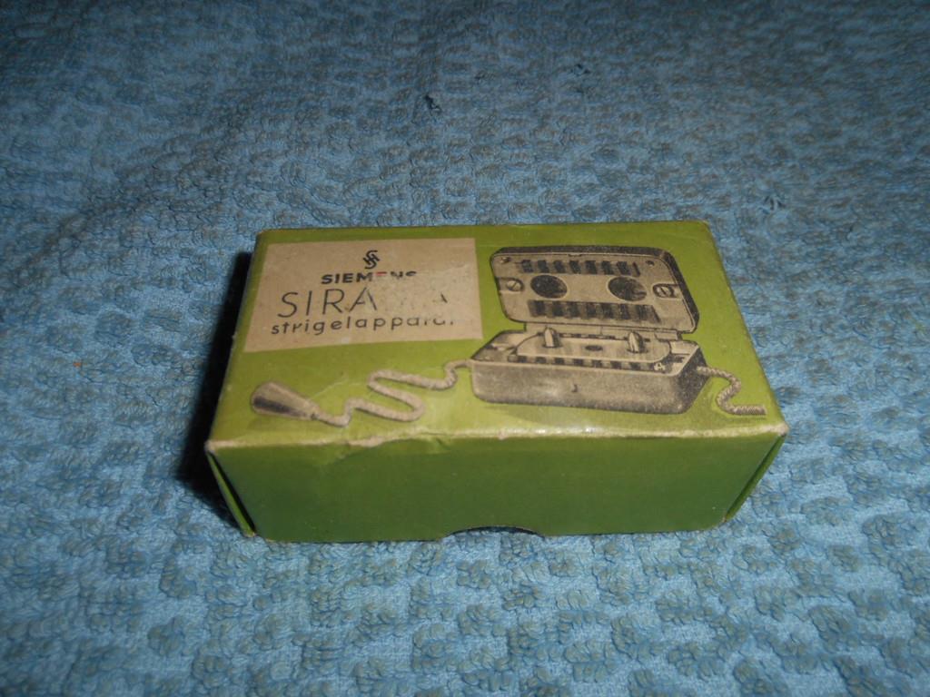 Пороюсь по двигателям ДПМ и по ДПР, может и есть что-то низкооборотистое. Надо кстати как-то посчитать обороты в минуту на родном двигателе. *** Добрались кривые руки до коробочки для батарейки, которую хочется назвать "футляром металлическим для элемента питания". Очистил ржу электролизом при помощи зарядки для телефона (5v 0,8A) и пригорюнился - аж до дыр сквозных проржавело частично. Вообще, бритва побывала в руках какого-то горе-дриставратора, который ножом частично соскреб краску с футляра и то ли дрелью с проволочной щеткой, то ли еще чем-то приложился к корпусу бритвы. В результате родная краска осталась только на одной стороне футляра и частично на крышках, а на корпусе бритвы с одной стороны остатки хрома, а с другой - лысина до латуни с пятнами промежуточного слоя меди... Перехромировать не хочу, не буду. А на корпусе родную красочку постараюсь оставить. Голь на выдумки хитра, и я додумался поменять местами крышку и замочек крышки. Таким образом, убитая сторона станет "спиной". Надо теперь придумать, как сделать наклейку. Добавлено спустя 10 минут 22 секунды: Фотографии относительно живой коробки Sirama. Теперь понятно, как там перегородка-ложе выглядит. Обратите внимание, есть резиночки-крепления! Инструкция на френче: Инструкция на дойче: Добавлено спустя 7 минут 43 секунды: Рекламки и что-то еще про Sirama. Открытка. Рейхскурица на месте. Рекламный проспект батареек Siemens за 1937 год: Идея для особо упоротых - отрисовать и напечатать наклейку на батарейку. Прототип: Добавлено спустя 13 минут 43 секунды: Точилки! Точилки делались в Германии, Австрии и Швеции. На немецких не написанно ничего, на австрийских - Siemens Austria (только в случае с бакелитовым корпусом), на шведских есть штамп внутри. Вот точно такую же удалось урвать за 170 грн. Из Восточной Пруссии. Только ручка у нее не белый конус, а черная деревянная фасолина. Ранняя коробочка, корпус металлический разных цветов: Поздняя коробочка, корпус бакелитовый, колесики тоже: Бакелитовая поздняя. Те самые колесики: Иногда встречаются с абразивными вставками коричневого цвета: Шведская ранняя: Итак, внимание, вопрос! Насколько я понимаю, красят абразивы не для красоты, а для идентификации. Какая зернистость у зеленого абразива и есть ли смысл искать коричневые вставки? Насколько хуже абразив в советских точилках-подделках? И вообще... Они точат, эти точилки, или это так, экспонат?