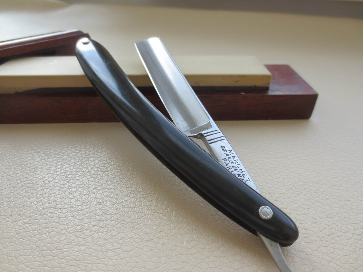 которые не ищут чего-то особенного в бритье опасной бритвой, а просто имеют нормальное и разумное желание - сэкономить на процессе бритья, особенно при таких ценах и качестве кассет для станков. Вот такой скромный, недорогой, но в тоже время достаточный набор для бритья. Опасная бритва Чайка ЗТВ 62г. и отрезок кожи растительного дубления для самостоятельного изготовления ремня для правки вашей бритвы. Бритва заточена, полностью готова к бритью, протестирована лично, бреет чётко, как и положено ЗТВшным бритвам, продезинфицирована после работ. Заготовка на ремень, размеры 260 х 40 х 4мм, ширина такая же, как на стандартном советском ремне для правки того периода, но длиннее.. Положил на фото для сравнения. Кожу отшлифовать наждачной бумагой и приклеить на полоску 3 мм фанеры или подобного материала ( да хоть на широкую школьную, деревянную или пластиковую линейку) для обеспечения небольшого прогиба при правке, как на полноценном подвесном ремне. Теперь всё для опасного бритья у вас имеется.. 62г Show Бесит, когда приходится пользоваться бритвой моложе себя...