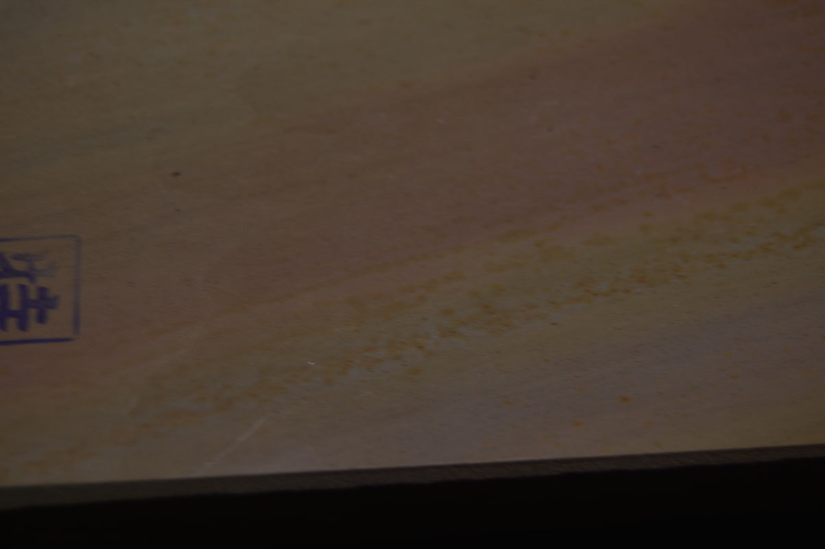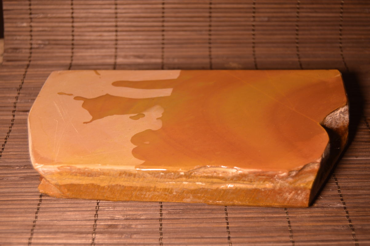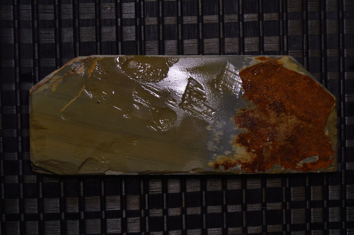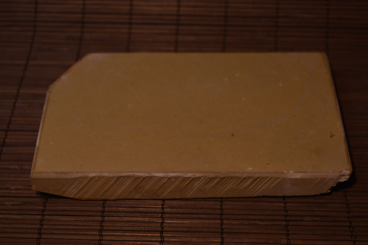 Re: Продаётся от artemarut1 Распродажа страницы №1Spoiler Show Японский камень, цвет солнечный (Иромоно), твердость около 4+ очень тонкий финишный камень, использовать лучше всего последним в сете, суспензию добровольно не дает, но очень легко выжать с помощью нагуры. Такой тип камней можно использовать без сета нагур, достаточно одной более твердой чем сам камень. Нет каких либо царапающих включений, линия на камне исключительно цветовая, обработан против расслаивания (бока и низ, некоторое время камень был в моем рабочем сете). Размер в максимуме 167/83/27мм Цена Продан Spoiler Show