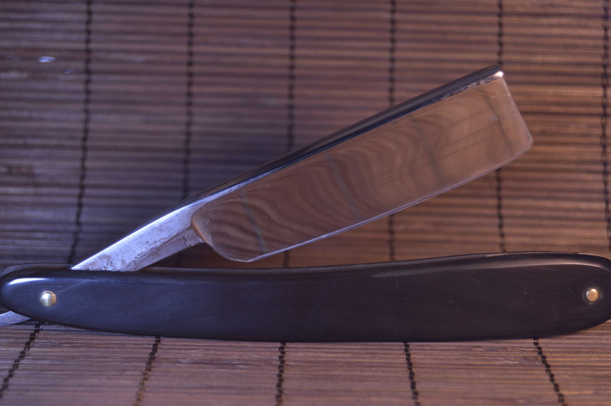 Re: Продаётся от artemarut1 Скидка 10% на все весь июль!!!Spoiler Show Wade&Butcher Fine India Steel, размер чуть больше чем 19/5.5мм(полотно/спинка), реставрация с сохранением патины, ручка также после реставрации(рог, трещин нет, родная) с точки зрения практического применения нет никаких проблем, режущая кромка чистая . Обычно рукастые продавцы подвергают такие бритвы регринду и точат получившийся hollow с помощью изоленты, здесь как видно все как делалось раньше в золотое время опасных бритв. Цена Снята с продажи(заточка входит в цену) Spoiler Show Spoiler Show Для сравнения фото бритвы той же марки с торговой площадки авито, как видно на фото обух абсолютно чистый от следов камня, это значит что бритву затачивали с несколькими слоями изоленты и это не самое худшее с точки зрения бритв холлоу, но для бритв типа клин сложно добиться четкого сведения даже с одним слоем.