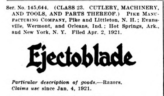 Торговая марка EJECTOBLADE зарегистрирована в 1921 году