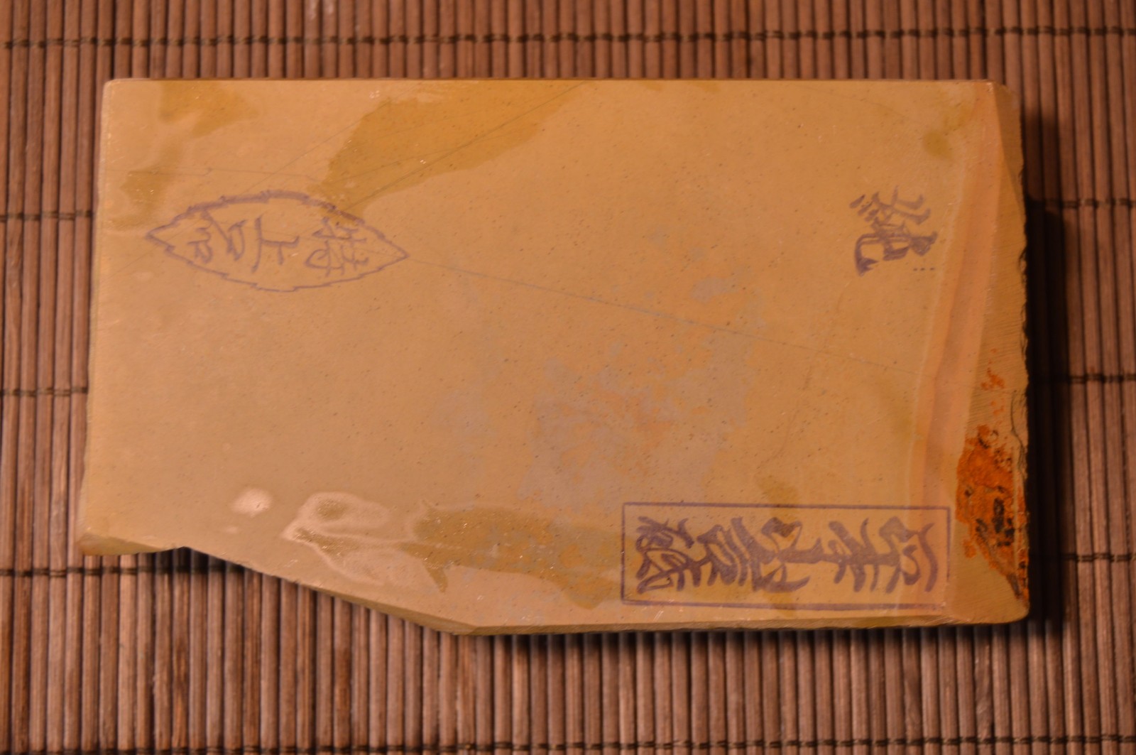 Re: Продаётся от artemarut1 Wade&Butcher-ы и не только!Spoiler Show Японский атрибутированный камень NOS, абсолютно чист, как и положено камням такого качества, стоит известный штамп с торца, кому интересно погуглите, штамп известный. Твердость по поверхностным ощущениям 5-5+(сложно сказать точнее, камень новый)Размер 138/82/34мм в максимальных измерениях.Цена Продан. Spoiler Show