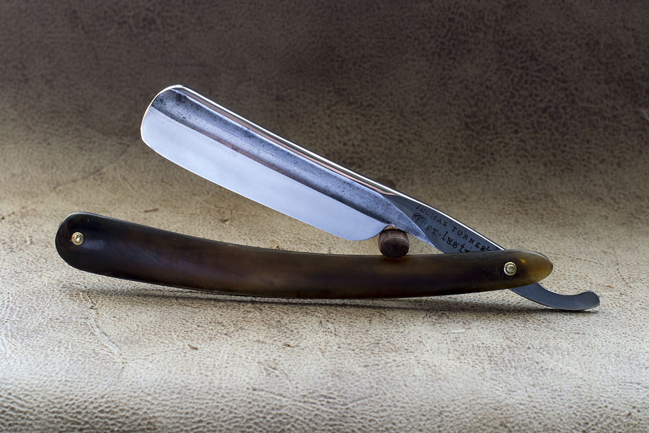 Бритва второй 19 века, от одного из моих любимых производителей того времени. Самобытный дизайн, дол интересной конструкции, свойственный бритвам от Томаса Тернера и армейским бритвам от Томаса Варда. Ширина полотна 21 мм. Прекрасная геометрия, сталь по качеству не уступающая более известным шеффилдским производителям. Бритва точилась мало, возможно не была в использовании, заточка имела признаки заводской, без сведения кромки. Родная роговая рукоять без клинышка. Прекрасно подойдет новичку, так же отлично дополнит коллекцию старых английских бритв. Укомплектована родным чехлом на 2 бритвы, второй экземпляр к сожалению не попал ко мне в руки. Заточена и готова к бритью. Продано. Spoiler Show