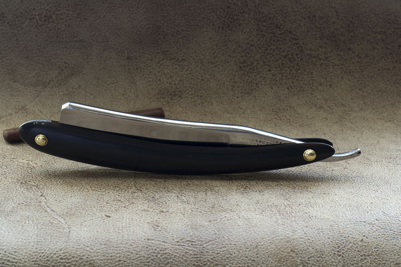 Представляю очередную бритву от наиболее именитого производителя опасных бритв из Англии. Ширина полотна 5/8 (16мм.) Роговая рукоять, вогнутость – клин. Именно такие старые шеффилдские клины среднего размера я рекомендую для повседневного использования и в качестве стартовой бритвы для новичка. Так же бритва прекрасно подходит для окантовки усов, висков и бороды. Легкая, маневренная бритва с хорошей геометрией, от легендарного производителя. Продано Wade & Butcher Show