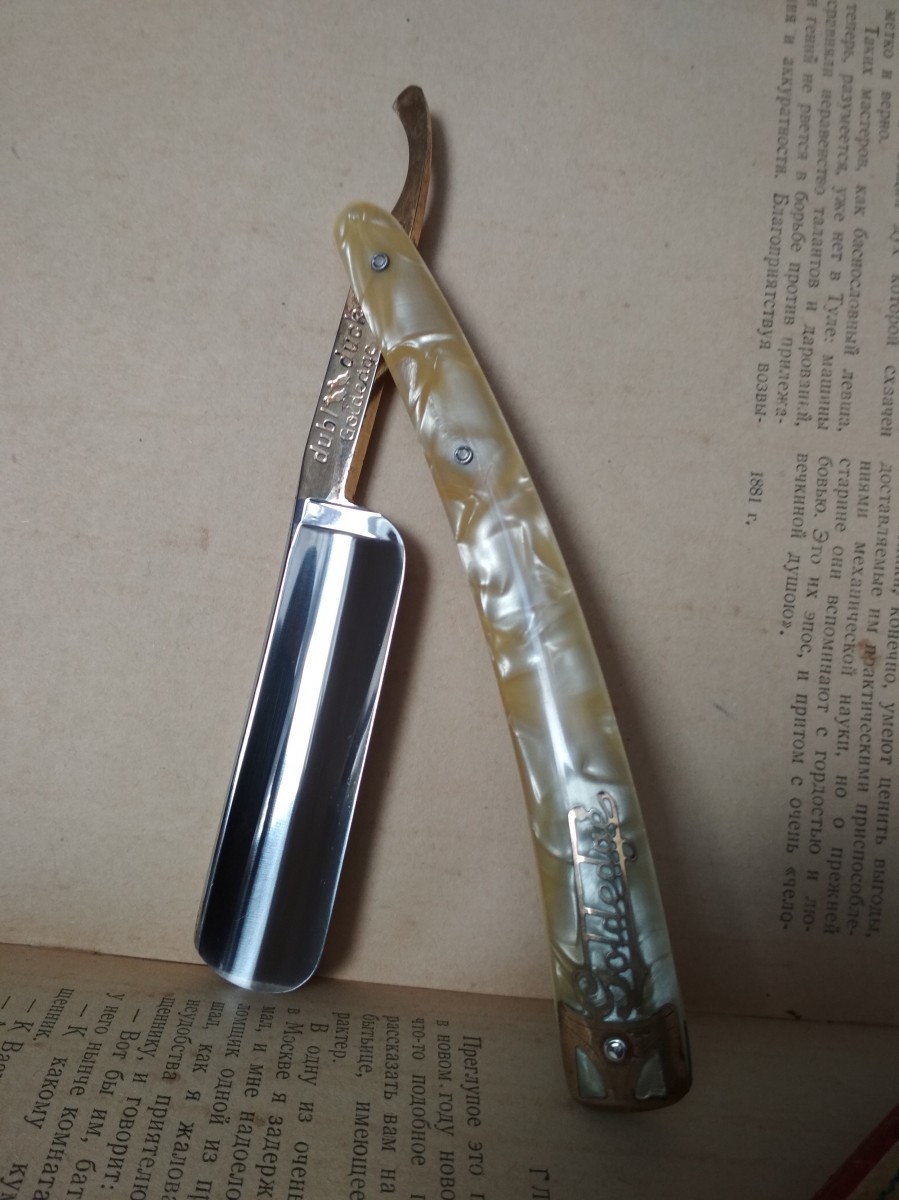 Бритва для Старичка., тот, который давно отбросил стереотипы по поводу ТМ, производителя и т.д. В использовании не была. Была проведена легкая профилактика полотна. Есть мелкие грешки, но они поверхностные.Ручка - целлулоид. Пины родные. 55$. Почта входит в скромную стоимость. Spoiler Show Re: Продаётся от KarangiПривет. Мост 55г с предыдущей странички продан не? Если нет, какая цена?