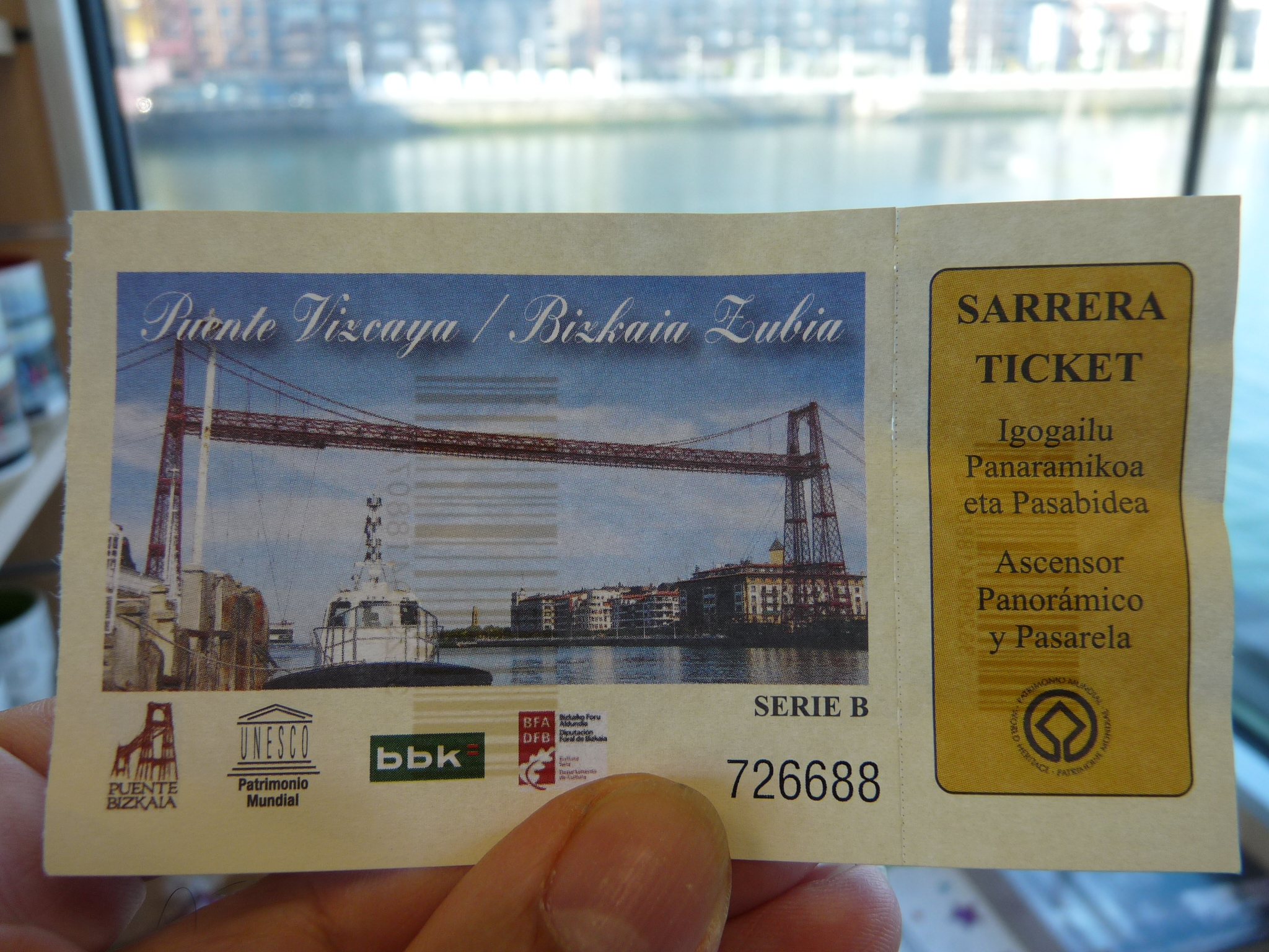 "Бискайский мост" - Puente Viskaja (Bizkaja). Это творение ученика Эйфеля, и остался такой последний действующий паромный вантовый "мост" в мире (хотя это всё-таки паром, мне кажется, а не мост). Построили в начале XX в, работает с перерывом на 1937...1942г. (когда его взорвали отсупающие баски и восстановленный Франко в 1942г.). С того времени работает круглосуточно и, якобы, без кап. ремонтов. Перевозит за пару минут. Своеобразное ощущение.
