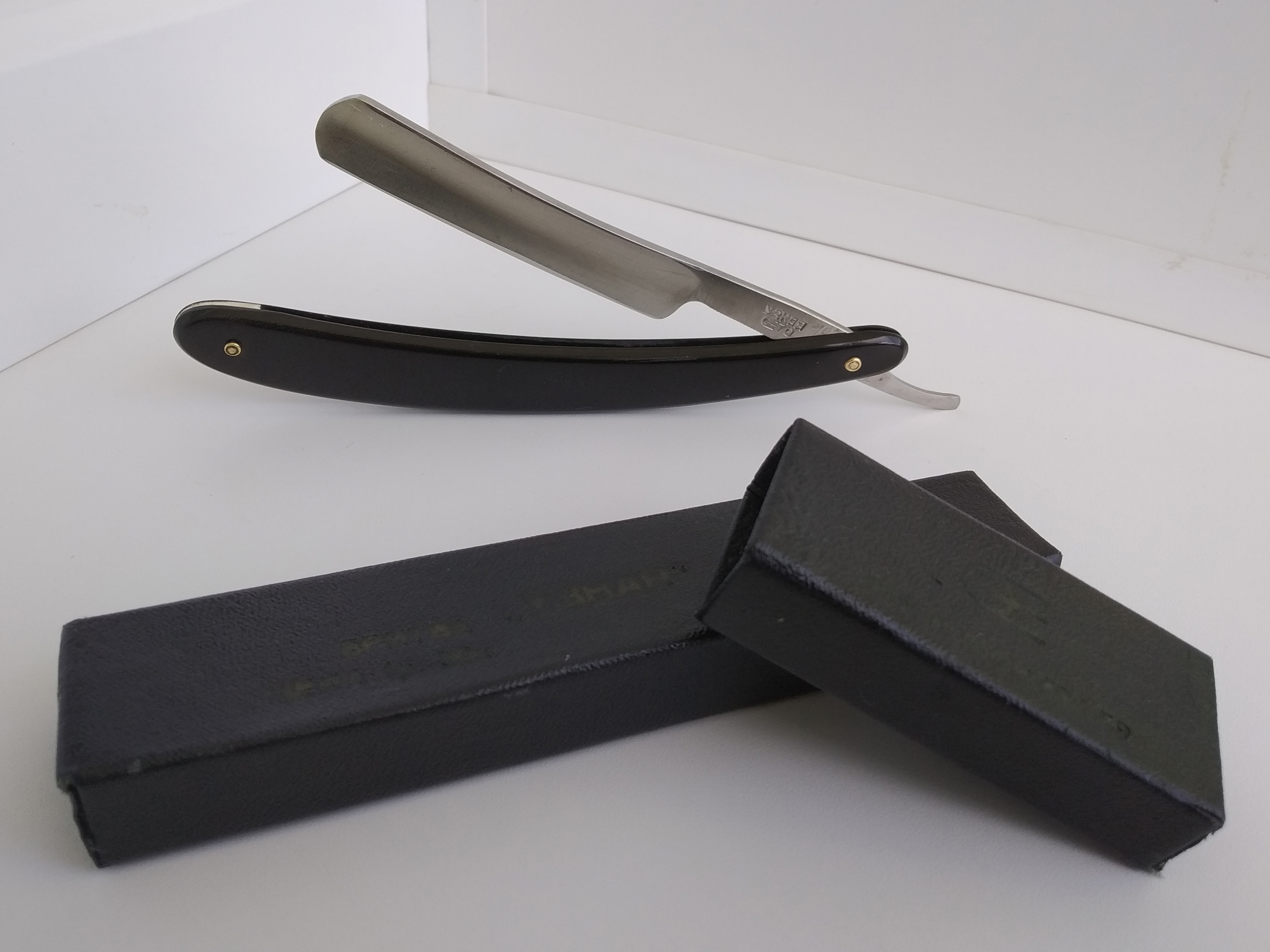 Re: Продаётся от Alexey SamokatovБритва Erik Anton Berg Eskilstuna Продам опасную бритву Erik Anton Berg, город Eskilstuna, Sweden. Бритва после ремонта и реставрации, в очень хорошем сохране. Бритва разбиралась, прошла очистку, полировку, собрана с оригинальными заклепками. После сборки клинок в оправе сидит плотно, по-центру, не болтается. Лезвие без дефектов и ржавчины. Ширина полотна - заводские 9/16 (14,3 мм). Полная вогнутость, тончайшее сведение, кромка узкая и равномерная по всей длине. Бритва заточена и готова к использованию. Отправляю почтой, пересыл оплачивается отдельно, по России от 100 до 200 руб. Цена - ПРОДАНО Еще фото Spoiler Show