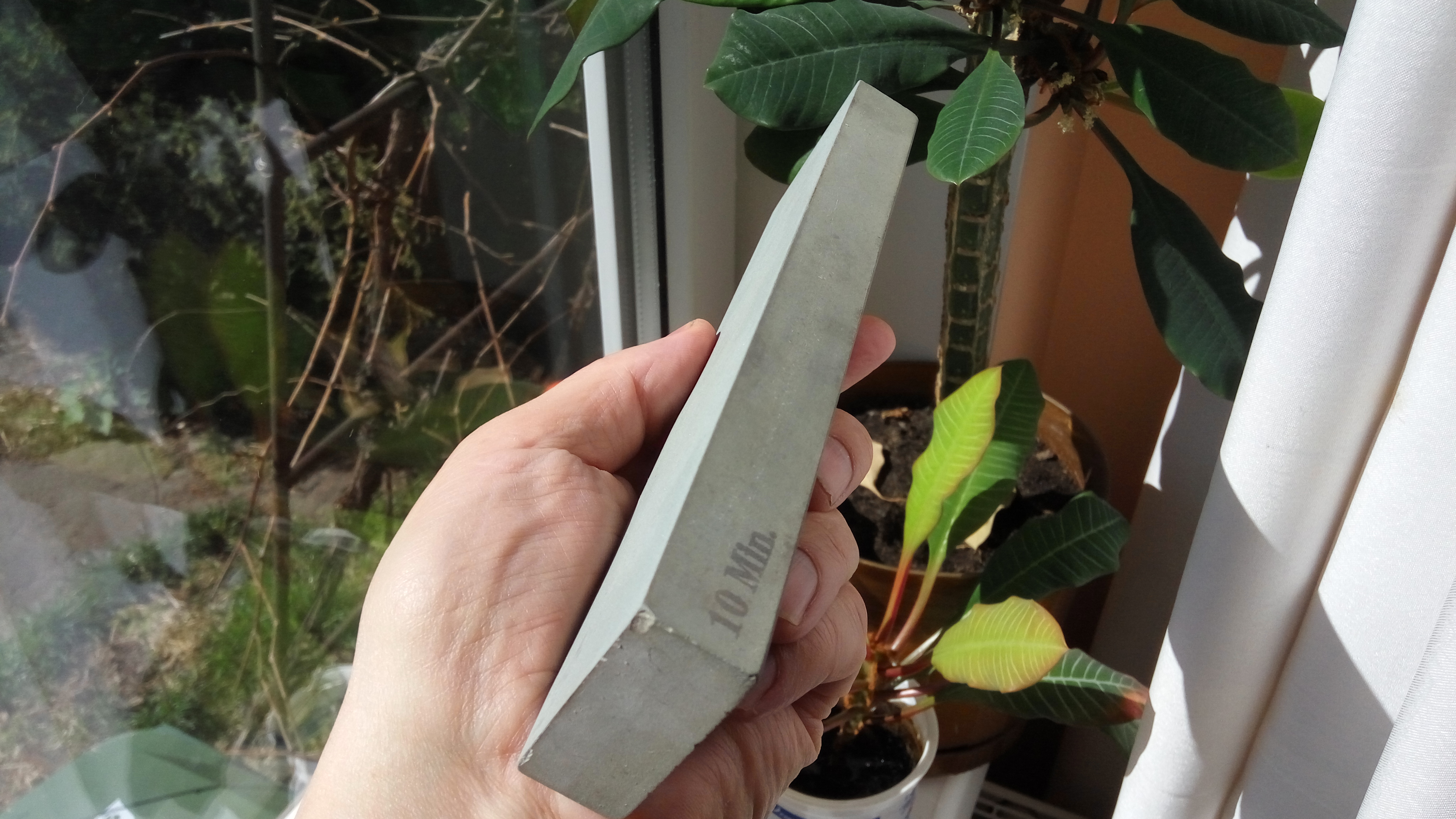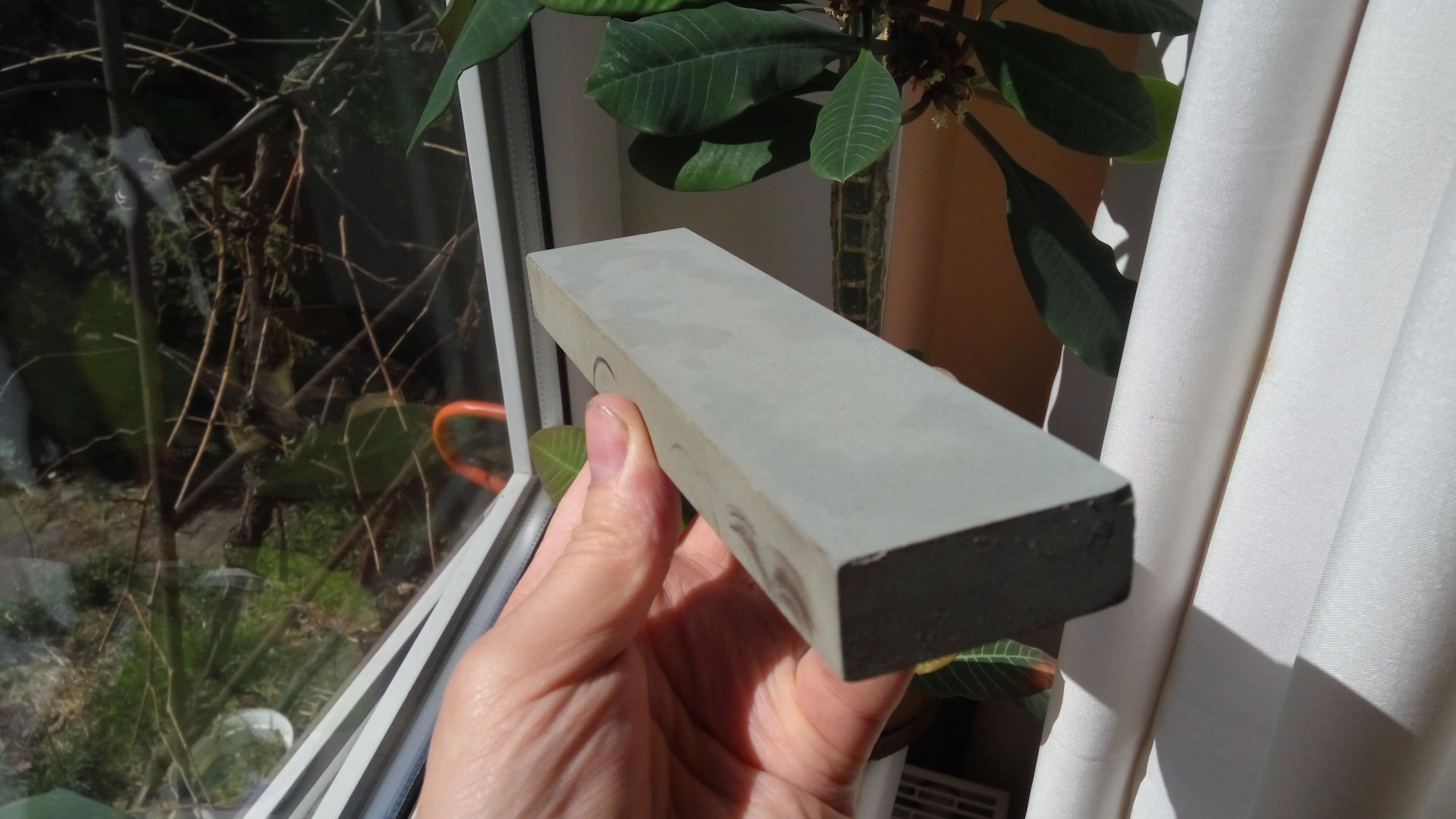 вот еще один безфамильный, камень очень мне нравится, купил на ИБЭЙ, позиционировался как для ювелиров, работает в диапазоне от 600 до 1500, очень твёрдый, по моим ощущениям - натурал, метал грызёт с дикой скоростью. Когда выглаживается, то выдает все 3000, как мне кажется