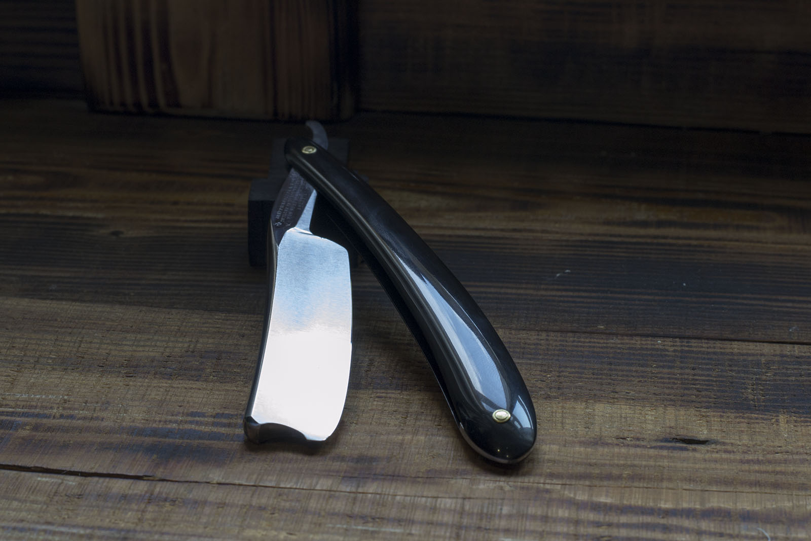 Старый клин, с прекрасной геометрией, изготовленный из качественной углеродистой стали во Франции. К сожалению период производства определить затруднительно, французы долгое время были приверженцами классических форм и подобные полотна выпускались до начала 20 века, но по косвенным признакам - форме родной рукояти и состоянию рога рискну предположить что это 70-80 гг 19 века. Бритва имеет крайне удобный эрль с подпальцевой выемкой, массивный широкий обух, ширина полотна 18.4 мм, отлично подходит для повседневного бритья и окантовки. Фаска режущей кромки тонкая и равномерная, свидетельство правильной геометрии полотна. Форма полотна уравномерно улыбчивая, что так же считаю несомненным плюсом. Бритва имеет новую роговую рукоять, изготовленную в соответствии с оригинальной, заточена и готова к бритью. Продано Volpiliere Fils. Show