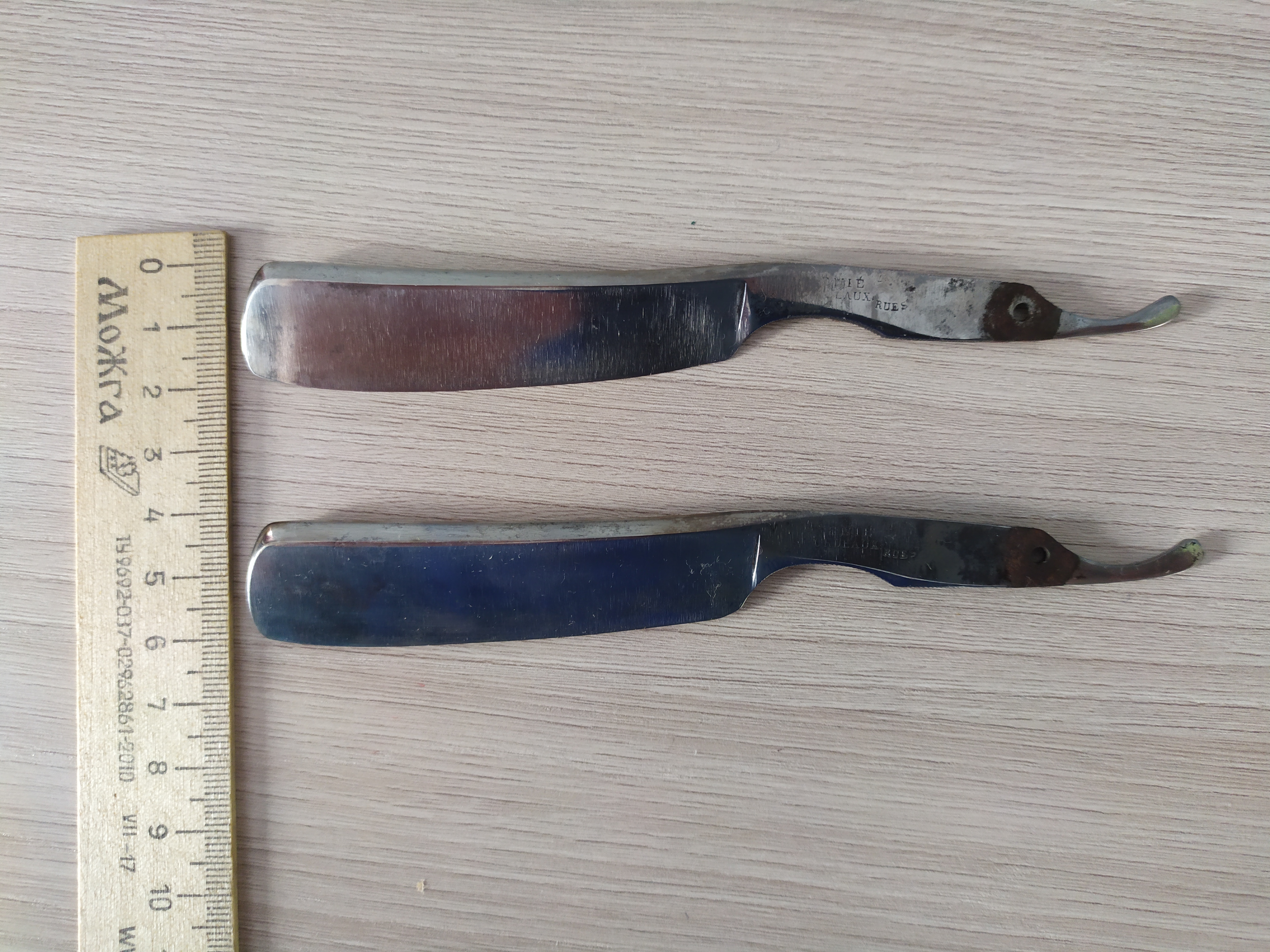 С разрешения администрации.Предлагаю к продаже клинки старинных французских бритв, покупал для себя под восстановление, "руки так и не дошли" до них, сейчас приходиться продавать, цена будет ниже той по которой эти клинки покупались.Клинки обработаны дез.раствором и слегка смазаны маслом для парикмахерского инструмента, больше ничего с ними не делал, продаю,как есть.Замеры клинков произвожу в самом широком месте.