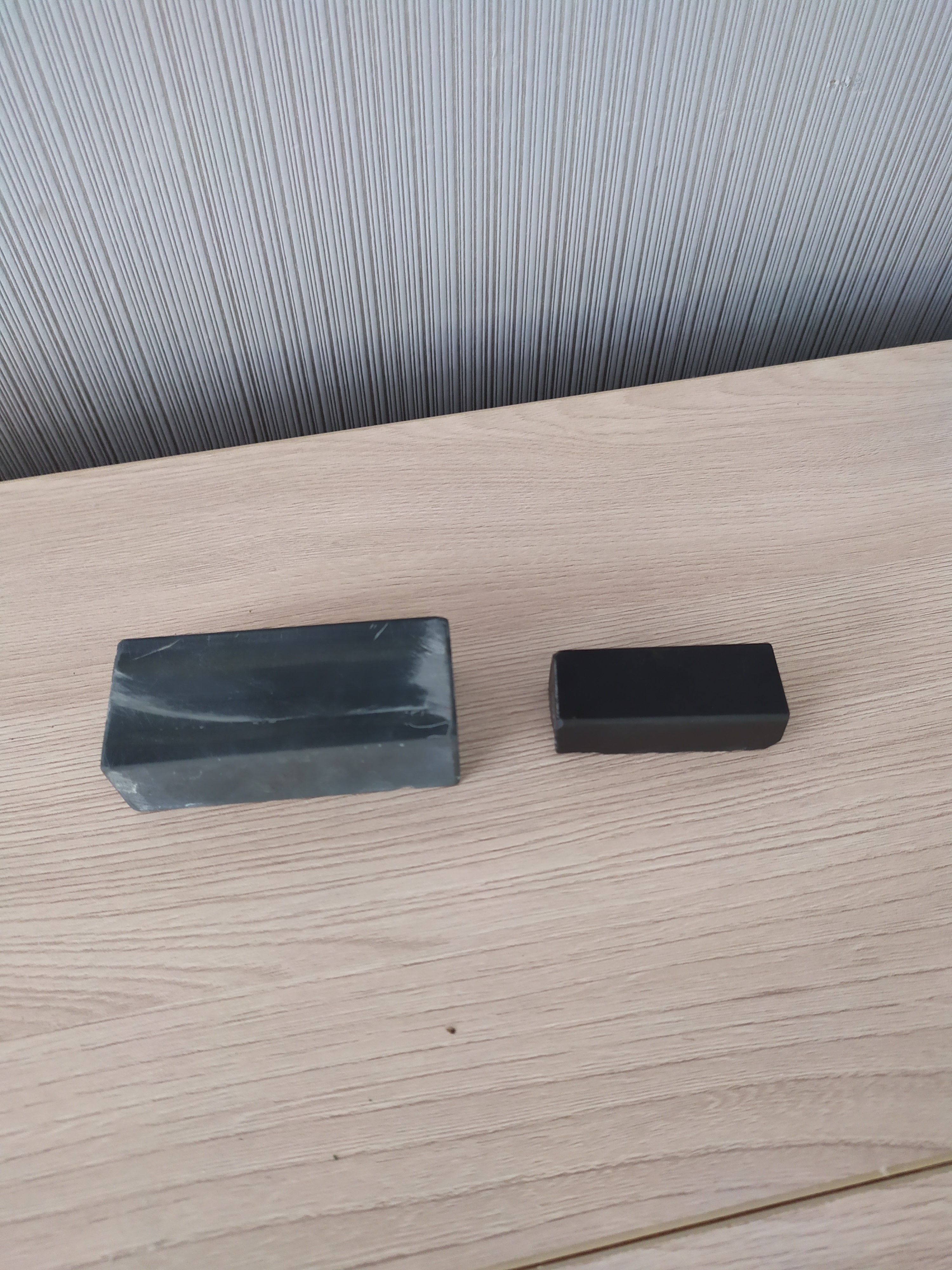 1.maruka Накаяма киита Кан.Твердость 5. Этот камень покупал на ебей, цену за него просили около 400$ или чуть больше точно уже не помню.Сразу не получилось его купить, думал продавец цену скинет, но камень перекупили, не знаю по какой причине, но в итоге сделка не состоялась и я 2 дня торговался с продавцом, чтобы снизить цену.За эти 2 дня я "нарыл" максимум информации о продавце ( все таки сумма не маленькая и хотелось знать кто мне продает товар). Продавец из Бельгии, камень описал грамотно и красиво, писал, что это лучший камень для бритв в его коллекции и что он все распродает ( кстати так и было). Я нашел его на SRP, там он известен, еще нашел его труды в сети по японским камням, очень интересная информация.К сожалению ссылку дать не могу не сохранил.Так же мне удалось найти японского продавца, у которого изначально был куплен этот камень.Можете мне не верить, но это правда, в итоге я списался с японцем , предоставил ему фото этого камня, японец, старик, продавец точильных камней, мне написал, что камень подходит для "полировки" ( так переводчик перевел) бритв и его цена составляет 380-450 $. Твердость камня -5. Так было в описании при покупке и так же считаю и я, твердость на мой взгляд именно 5 , кромка бритвы после заточки получается глянцевая, блестящая, отклик у камня приятный, не стеклянный.Линия не токсичная, заточке не мешает, рассматривал ее в лупу х10, ничего подозрительного не нашел.Еще хочу сказать, что зерно у камня тонкое."Запечатан" лаком со всех сотрон, кроме рабочей поверхности, мне думается это "уруши", но могу ошибаться. На торце хорошо видна печать "марука", камень толстый и тяжелый. Цену прошу 20000р. Размер 146 х 85 х 25-30 мм.