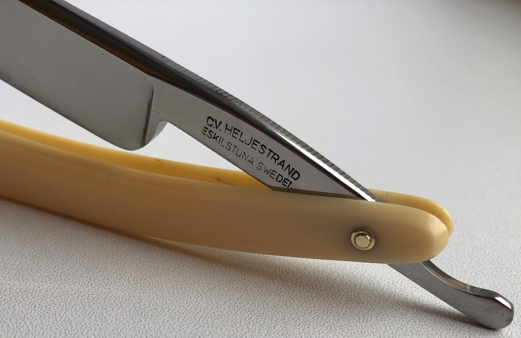 C.V.HELJESTRAND-ESKILSTUNA-SWEDEN модель 42 "три короны". Ширина полотна-20 мм Толщина обушка-6 мм Форма лезвия-1/2 клина Углеродистая сталь. Бритва периода 50-60-х годов 20-го столетия. Совершенно непользованный клинок, в прекрасном , оригинальном состоянии:шлифовка, полировка и ширина полотна-всё заводское. Бритва не точилась до меня . Заточена , с использованием одного слоя изоленты, дабы сохранить родной сохран.Поменял пины на более надёжные, немецкие втулки, с добавлением внутренних шайб.Тяжёлая и красивая бритва.Идеальная геометрия клинка:кромочка практически незаметна.Заточена и готова к бритью. Не пропустите ! Цена-10500 р с доставкой. ПРОДАН Внимание! Важная информация! Spoiler Show