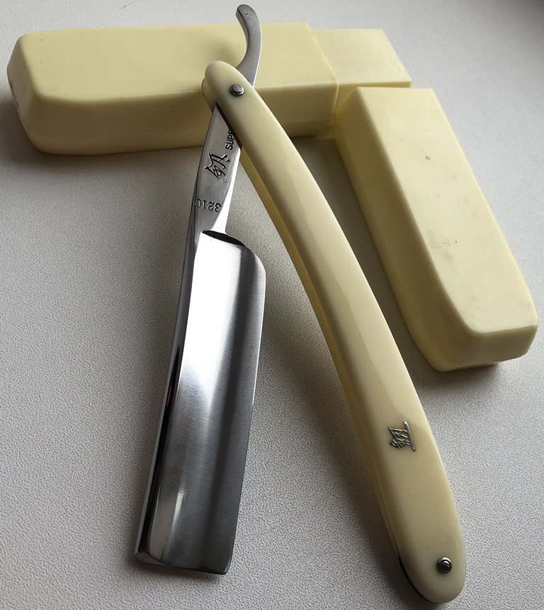 А мы продолжим.... Непользованная японская бритва MANASLU 205 от компании NICHIRI CO.TOKYO.JAPAN Ширина полотна-21 мм Толщина обушка-6.3 мм Полная вогнутость. Высококачественная углеродистая серебряная сталь Ясуки-Y.SS2.H (Yasuki Speciality Steel)от компании Hitachi.Shirogami White Steel (#2)-Широгами-Белая бумага. Примерно-50-70-е года производства. Немного информации тут https://historyrazors.wordpress.com/201 ... ichiri-co/ Бритва в прекрасном и непользованном состоянии. Не разбиралась и не ремонтировалась.Родная шлифовка и полировка.Идеальное состояние клинка, без видимых дефектов и царапин.Кромочка равномерна по всей длине и еле заметна.За счет своего толстого обушка бритва достаточно тяжелая.Отличная, "поющая" и "звенящая" углеродка способна обеспечить комфортное и мягкое бритьё.Ничего с бритвой не делал, дабы оставить старинный и антикварный вид . Не пропустите довольно редкую и красивую бритву, в таком состоянии, с одной из лучших и удачных сталей на клинке.Заточена и готова к бритью. Цена-12500 р с доставкой ПРОДАН Внимание! Важная информация! Spoiler Show