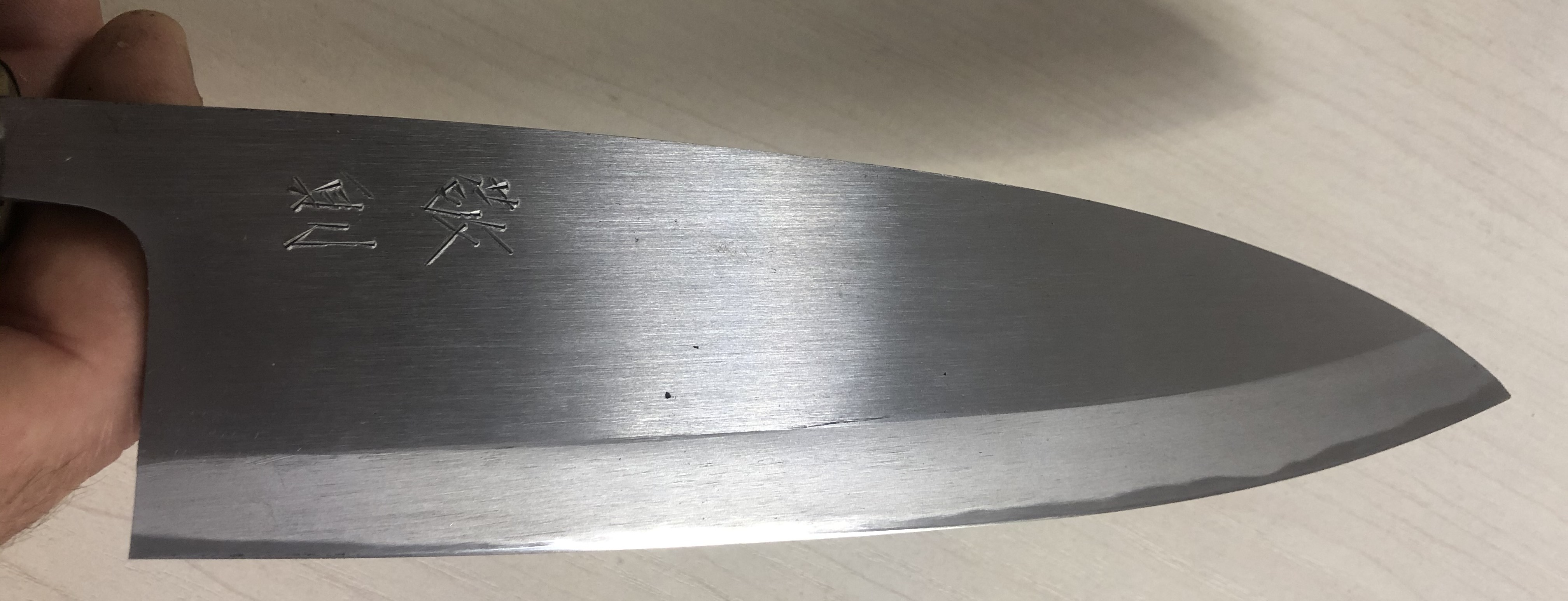 Нож нетронутый. Односторонняя классическая заточка.Ни разу ничего не резал. Хорошо видна линия перехода закалки клинка.Сталь твердая, как на большинстве ножей такого типа.Красивая и качественная работа. На все времена, так сказать.. Все хотел применить его в дело, но и своих ножей и так полно, так что решил расстаться...