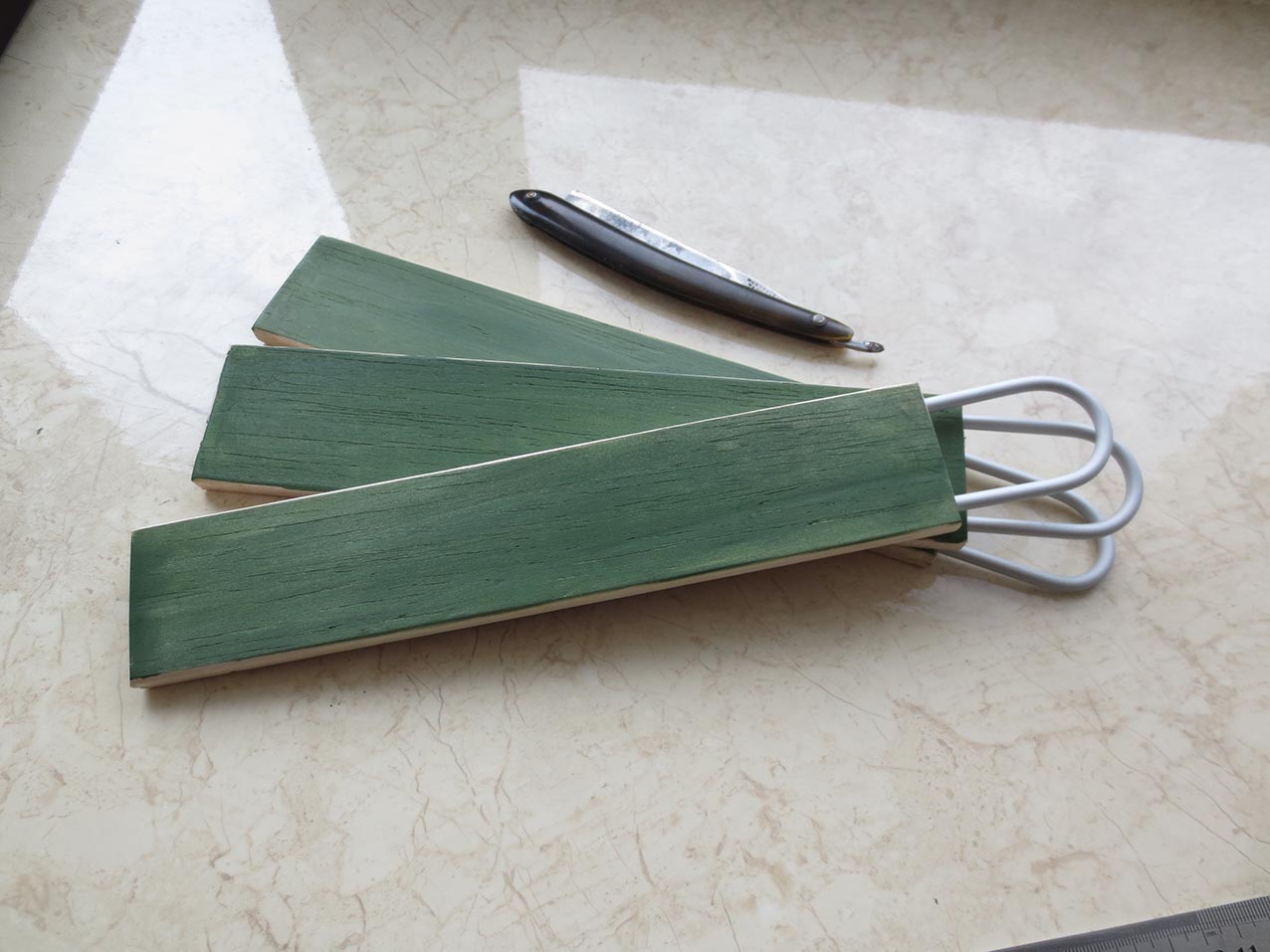 Продаётся от RuslanKлезвия опасной бритвы. Почувствовали, что ваша бритва затупилась и бреет уже не так резво, как в начале, вместо дорогих и не очень камней, можно самому довести свой инструмент до нужного комфорта. Размеры дощечки - 250 х 50 х 10 мм. Материал - бальса, ручка - 5 мм алюминиевый пруток. Боковые стороны отшлифованы и покрыты датским маслом. Зелёная сторона - французская паста Dialux, красная - сваренный по специальному секретному рецепту, удостоенный многих медалей и призов, фирменный крокус от нашего форумчанина ivan-3. Для обеспечения максимальной рабочей площади ручка сделана съёмной и легко может сниматься, одеваться, а также подвешиваться на крючок. Отправка почтой России производится в картонной упаковке. Цена дощечки - 750 руб, цена с доставкой почтой РФ - 1000 рублей.
