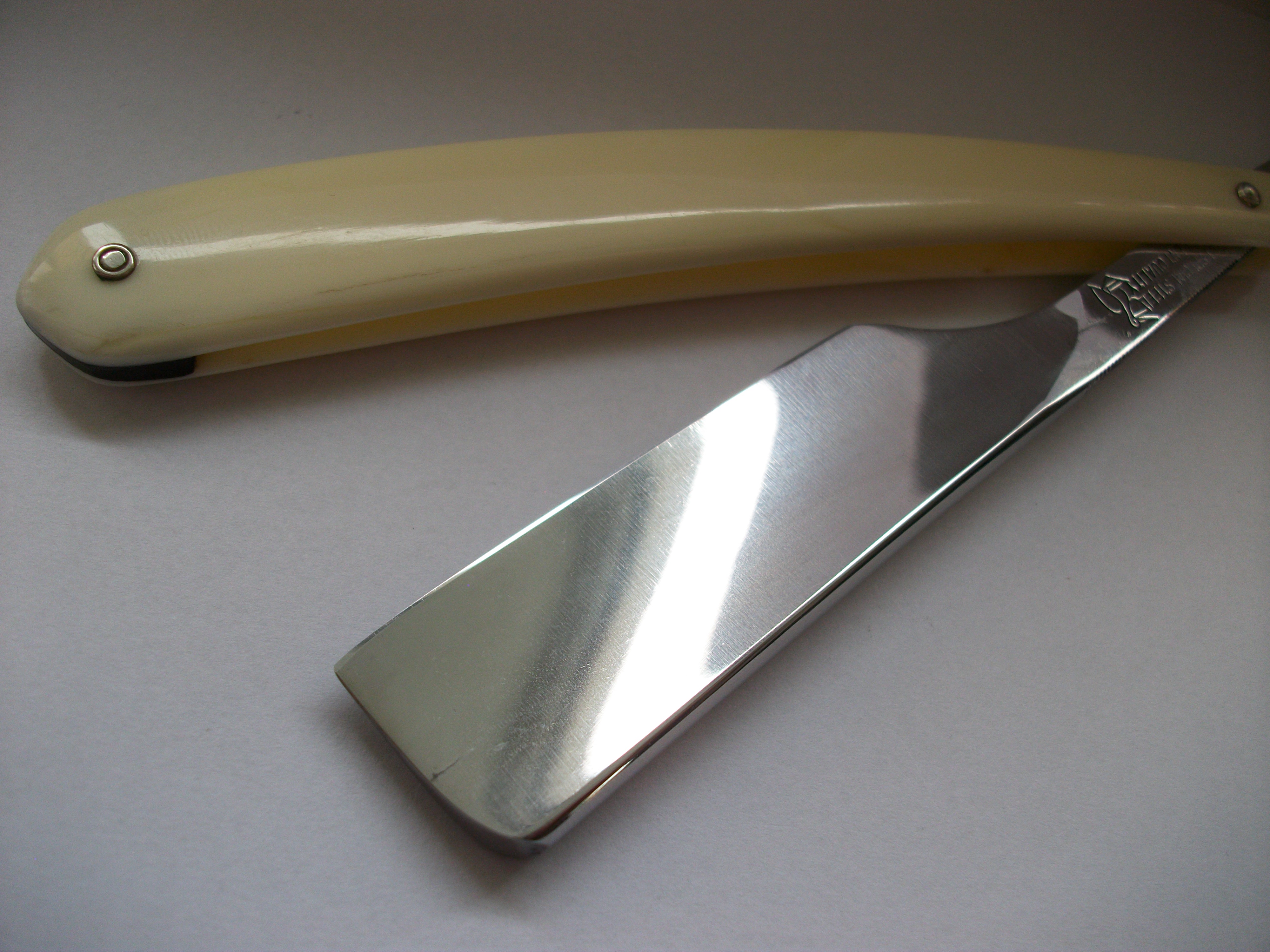 Ширина полотна 20мм, длина режущей кромки 70мм, нержавеющая сталь Frozen-steel (так полагаю закалка с применением отрицательных температур. Ручка классическая Пумовская, 3 пина, непонятные номера у осевого пина. Заточена и готова к бритью. Продано. Spoiler Show