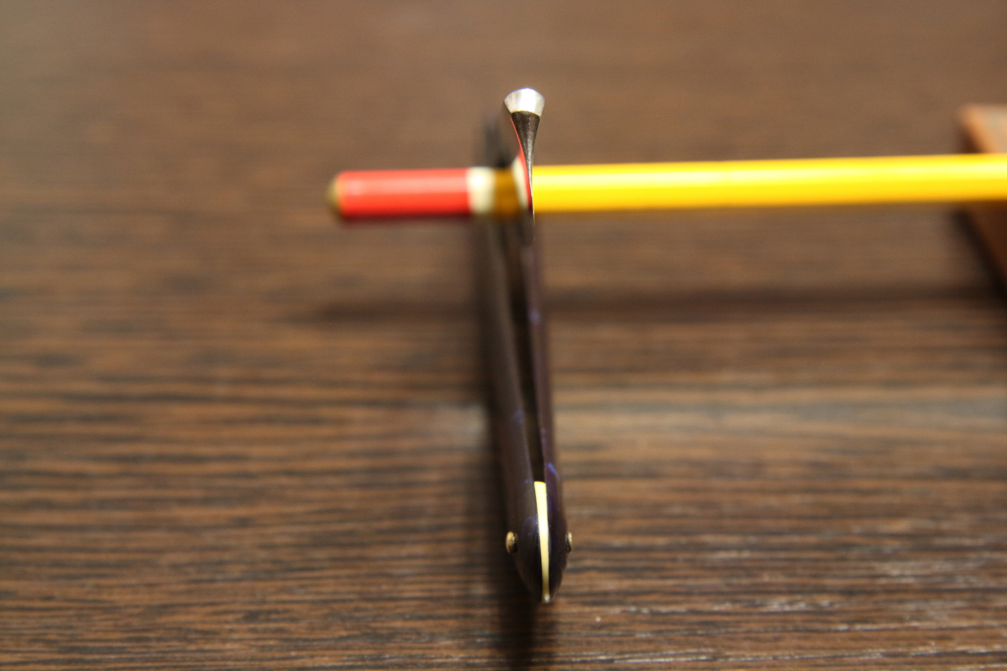 Опасная бритва завода Труд Вача Росинструмент, 1941 г, 8 месяц. Смоленское сражение, осада Одессы, оборона Киева, немец нацелен на Москву, и штурм Ленинграда... Ширина полотна 17.7 мм, все родное, футляр тоже. Ручка родная, из полупрозрачного пластика с узорами, трехпиновая. Бритва пришла с заводской заточкой и в идеале, чуть прошелся пастами и заточил. Подготовлена мной к бритью. Бритвы с клеймом "Росинструмент" очень ценятся. На мой вкус бреет достойно, без агрессии. Цена - руб.