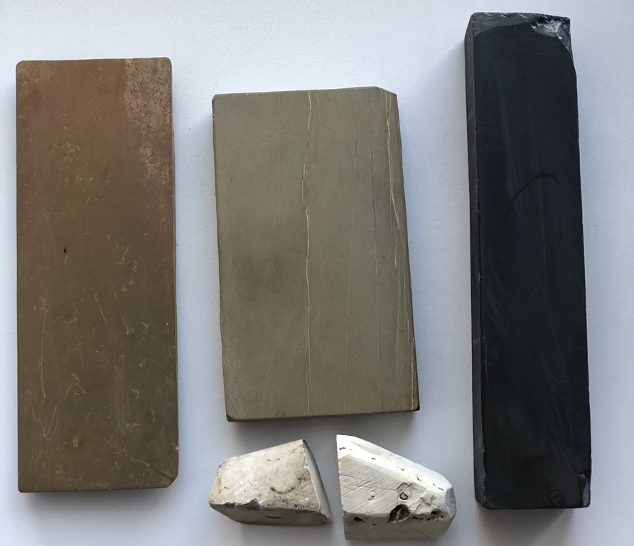 Камень примерно 4 по твердости.Если с твердой нагуркой работать, то немного выделяет суспензию.Прибыл из японской парикмахерской.По всей видимости на финиш или предфиниш пойдет.камень гладкий, тонко работает, без включений и паразитных включений.Можно подклеить на деревянную основу и пользоваться.