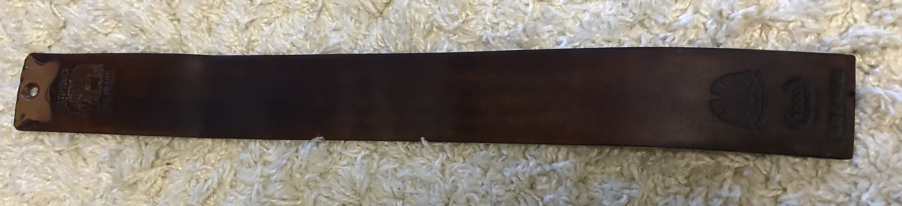 Специально ничего не делал с кожей, чтобы было видно исходное состояние лошади.Немного суховат,жестковат, хотя эластичность сохранилась. Есть микротрещинки на обратной стороне кожи. Сам кордован в хорошем состоянии,без порезов, шрамов, заломов и др.Требуется шлифовка и пропитка костным маслом. После реставрации можно использовать в качестве подвесного ремня, либо , что ещё лучше, в качестве колодочного или натяжного.