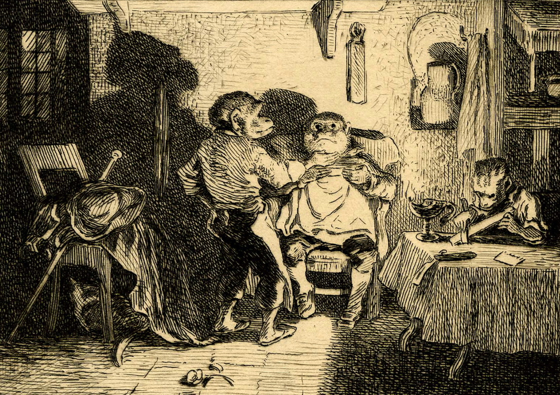 „The Barber” „Цирюльник” 1870 г. Обезяна править бритву: С 2013 г. с кайфом бреюсь опасной бритвой пять раз в неделю, в три прохода.