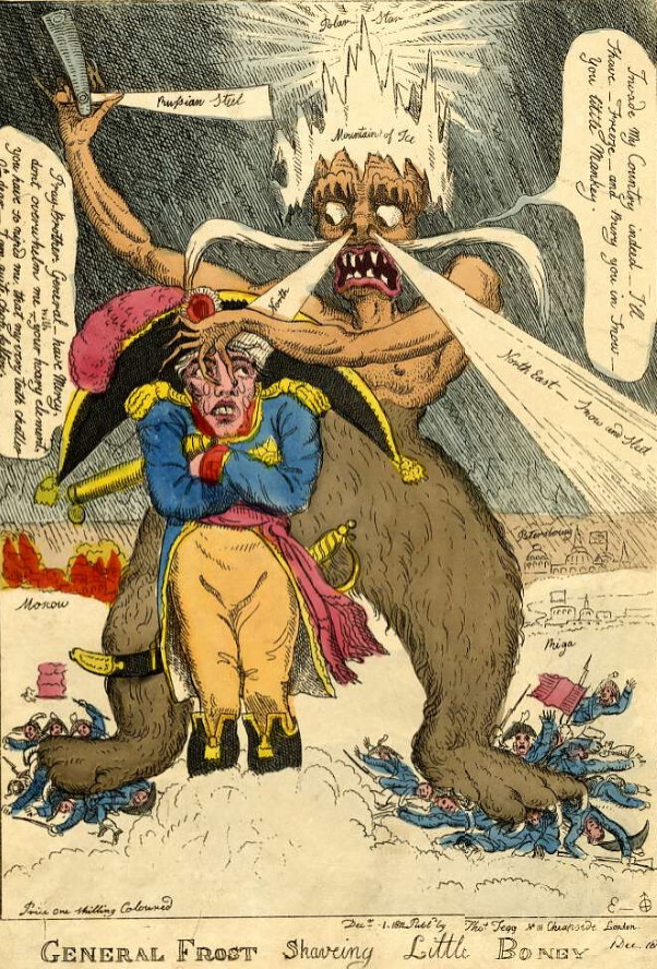 „Генерал Мороз (Холод) бреет маленького Бони (Наполеон Бонапарт)”, 1812 г.
