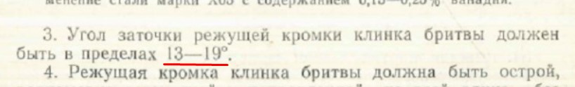 Ширина бритвы и толщина обушкаиз ГОСТа угол в пределах 13-19 градусов