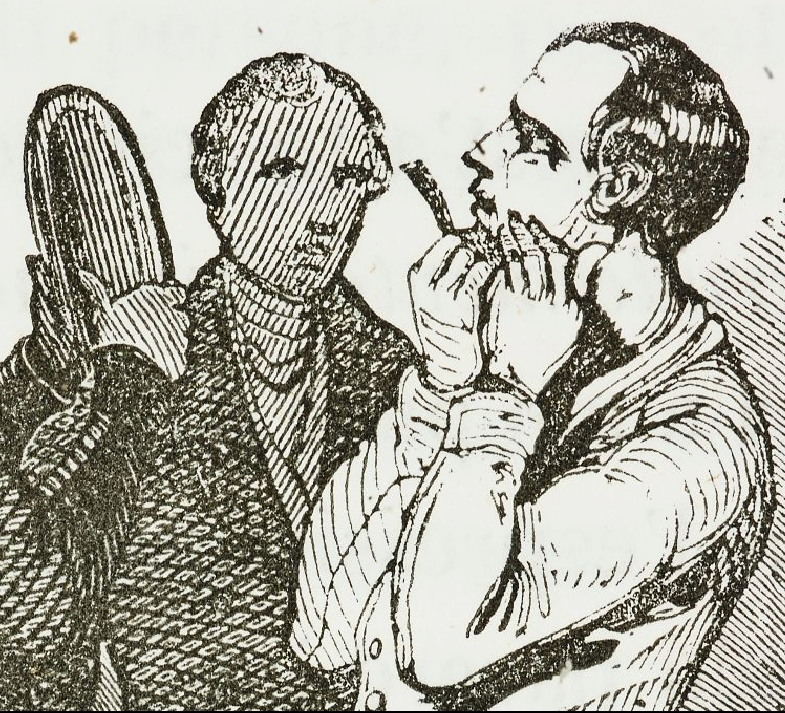 Иллюстрация из газеты „Mon Journal” от 29 мая 1897 г. „Antoine se mit a raser le comte” „Антуан начал брить графа” Взглянем поближе: С 2013 г. с кайфом бреюсь опасной бритвой пять раз в неделю, в три прохода.