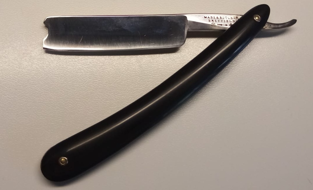 Почти клин 13/16. Углеродистая сталь, рог, кость. Родная коробка. Бритва со следами времени, после реставрации. Бритва заточена и готова к бритью. Продано на другом ресурсе Spoiler Show