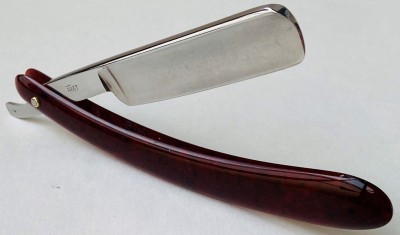 Бритва не имеет следов от заточных камней,т.е. можно предположить, что в пользовании не была.Умеренная шлифовка и полировка полотна.Шикарную патину на эрле и обушке немного оставил, предварительно убрав лишний налёт. Идеальная геометрия клинка:кромочка равномерна по всей длине и еле заметна.Новые втулки и добавленные внутренние шайбы. Ручка отполирована и находится в прекрасном состоянии.Красивая, достаточно редкая и относительно недорогая бритва в коллекцию и для бритья.