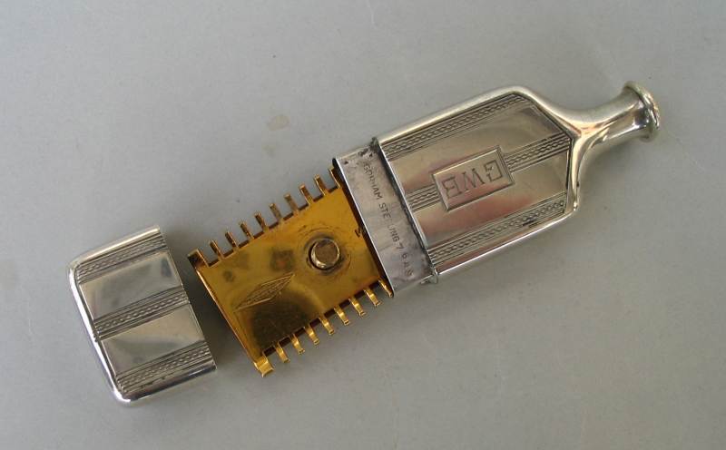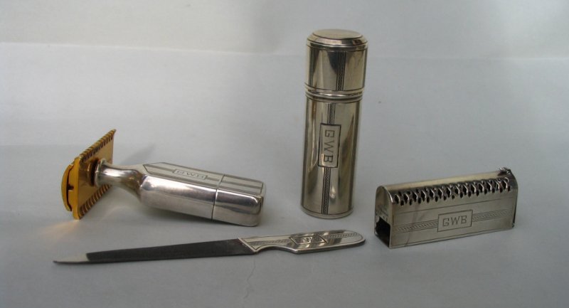 Как и во многих случаях, прототипом служила дорожная бритва компании "Gillette" - она периодически появляется на E-bay. Лично у меня имеется похожий экземпляр артели "Бритпром" 1934 года. Верхняя крышка бритпромовского футляра имеет двойное дно - туда вкладывались бритвенные лезвия. Аналогичные конструкции выпускал и завод "Красная Звезда" после 1937 года. Как правило, бритвы этого периода производства СССР имеют маркировку. Те лоты. которые появляются на "Молотке" часто собраны из двух-трех станков, поэтому информация на футляре порой прямо противоречит маркировке самого станка. Re: Дорожная безопасная бритваСудя по проглядывающему желтому металлу на торце ручки,этот станок как и многие из латуни а сверху хром или никель...я прав? Наши реплики из нержавейки или тоже латунь? Сам купил такие (себе и сыну) современные от Меркур...на одном сайте их храбро называют из"нержавеющей стали"))) в местном магазе честно пишут что латунь под хромом.