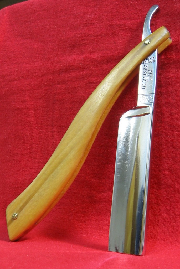 Spoiler Show Все фото (кликабельны) Show Описание Show Германия, примерно 1885-1926 гг. Бритва и ручка без сколов, трещин. Головные заклепки немного утопают в сторону и заходят чуть под дерево - это чисто визуальный дефект. Ручка дерево - липа, закрывается плотно, немного в сторону, но в ручку лезвие входит без проблем, не выпадает. Ручка с шайбами. Ручка пропитана 100% натуральным льняным маслом, без добавления химии, сиккатива, без морилки, краски, лака, только дерево и натуральное льняное масло. Такая ручка не боится воды. Состояние бритвы: 9/10 ИМХО комфортность и качество бритья: 7/10 (лезвие очень жесткое, звенит! Достаточно острая! Но лично для меня слишком жесткое лезвие) Видео Show
