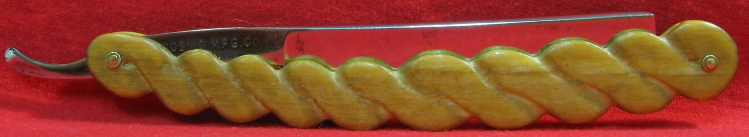 Worcester, Massachusetts ca 1858 - 1963 Размеры в мм.: Длина лезвия 68 Ширина лезвия 20 Обух (спинка) 5 Бритва и ручка без трещин и сколов. На одной стороне лезвия имеются сильные следы от коррозии, но бриться они не мешают - это чисто декоративный дефект. Ручка закрывается ровно и плотно, ручка пластик, возможно бакелит. Внешний вид бритвы: 7/10 Заточка: 8/10, мягко и остро работает, лезвие умерено мягкое. clauss - 1600р