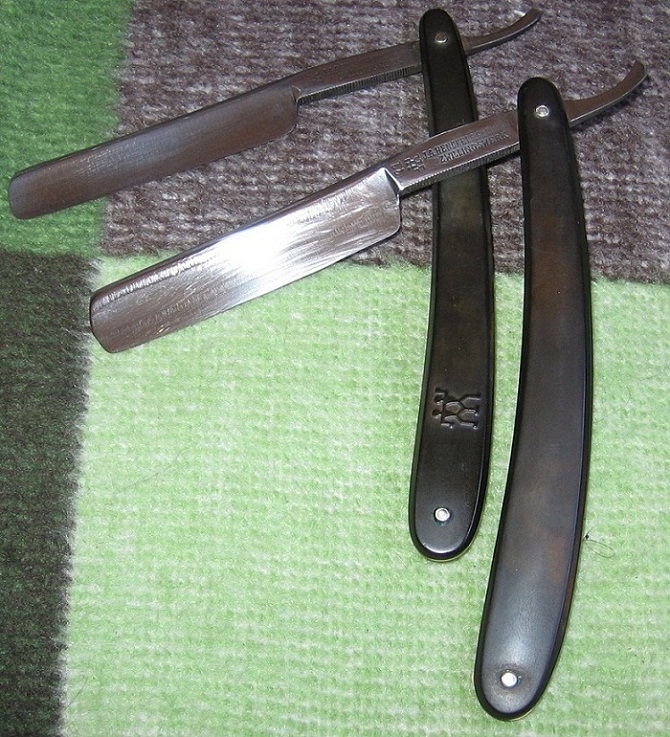 Здравствуйте!Недавно разбирал дедушкину кладовку и обнаружил там старый чемоданчик с набором бритвенных принадлежностей, в котором нашел ремень для заточки бритв, гребень, ручной станок для бритья и несколько опасных бритв!Как я понял из изучения форума, бритва Немецкая!Дорогие друзья, знатоки и любители бритв!Бритва острая, без сколов , Прошу вас рассказать о сей бритве, фотографии ниже.