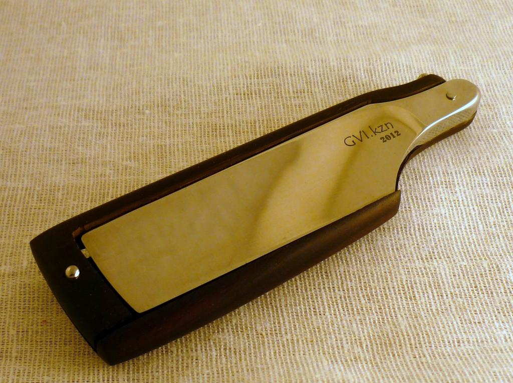В сложенном виде между кромкой и ручкой имеется зазор, правда не совсем равномерный получился. Бритву подарил сыну на 17 лет, пока нравится Одним ударом дерева не срубишь. . Татарская поговорка