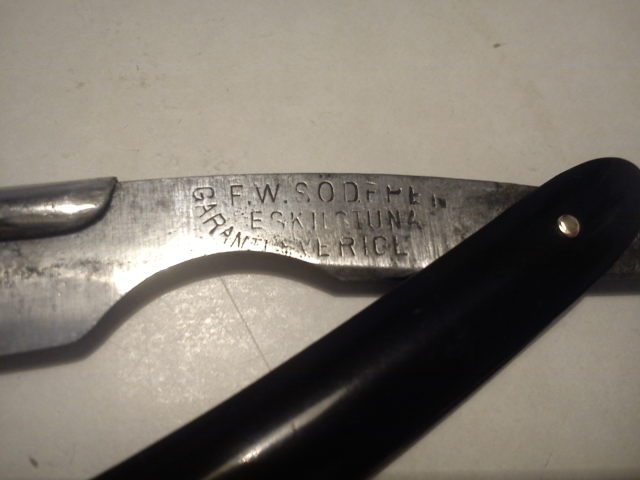 A.MODIN ESKILSTUNA, F.W. SÖDEREN, GARANTI SVERIGEA.MODIN ESKILSTUNA, E.W.SODFPEN ESKILSTUNA SVERIGE исправлено на A.MODIN ESKILSTUNA, F.W. SÖDEREN, GARANTI SVERIGE. Frameback (как подсказал Олег Бритва). Две старые шведские бритвы, конец 19 века. В копилку шведской темы. Re: A.MODIN ESKILSTUNA, E.W.SODFPEN ESKILSTUNA SVERICLZdravstvuijte. Ja zdes zametil odnu oschibku i hochiu ejo ispravit - F.W. SÖDEREN (1874 - 1920)
