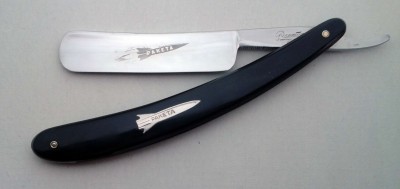 Ручка - натуральный материал. Что именно это - рог или черепаха, я не берусь утверждать. Читал споры об этом, убедительных доводов не увидел. Поэтому точным определением, при желании, сможет заняться будущий владелец. Ручка в неплохом состоянии, имеются щербинки, но в целом прочности ничто не угрожает. Опробовал в бритье - приятно бреет, чисто и комфортно. Заточена и полностью готова к бритью. Ширина полотна 16.5 мм, толщина в обушке 4.5 мм. Цена 75 евро, доставка включена.