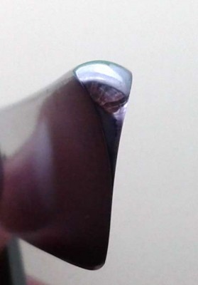 Spoiler Show Дальнейшая надпись читается плохо, но можно предположить что-то типа POND WORKS, SHEFFIELD. Надпись на полотне ROXO Сведения о производителе: http://britva.ru/forum/viewtopic.php?f= ... ers#p50963" onclick="window.open(this.href);return false; Ручка - натуральный рог в хорошем состоянии. Клинышек - металл. Свинец/олово клинышка окислилось и имеет неровности, однако свою функцию выполняет исправно. По-видимому, ручка, клинышек и пины родные. Заточена и полностью готова к бритью. Ширина полотна 16.5 мм, толщина в обушке 4.5 мм. Цена 70 евро, доставка включена.