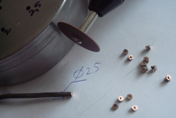 Решил попробовать сделать шайбочки под 1,5 и 2.0 мм латунную проволоку проволоку. Получилось не очень,но выводы были на будущее сделаны Первый и главный вывод: из трубки удобнее делать нежели из пластин. Можно играть с толщиной. Второй: если буду еще делать шайбочки для 2,0 проволоки ,то сделаю их на конус( так красивее получится). Ну и отчетик небольшой,может кому придется ко двору "Эта нога.... у кого надо нога"